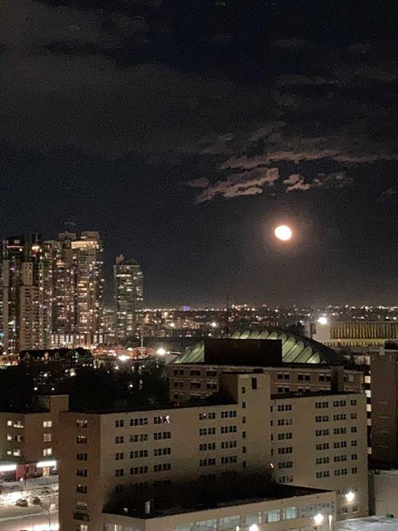 ROXBORO HOUSE sub-penthouse suite with STUNNING unobstructed city view and wood burning fireplace. Distinguished building on Elbow River and mature pathways, easy access to full complement of international restaurants and boutiques along delightfully vibrant Fourth Street. For the energetic, you can even walk downtown. Very well kept and maintained 1 bedroom plus den (den is large enough to be a second bedroom), 2 bathroom condo. The kitchen has been updated and is equipped with newer appliances and countertops. The living room boasts an incredibly beautiful stone fireplace and sides onto the dining area. Yes, it's wood-burning, a feature that will be VERY cozy as the winter rolls in. The covered balcony can be accessed from the living room and offers jaw-dropping downtown views. Fireworks from the Calgary Stampede can be enjoyed from this vantage without the crowds! It's like your own personal light show. The large primary bedroom can easily accommodate a king size bed and additional furniture, and offers custom built-in closets with abundant shelving as well as a 4 piece ensuite. The den is currently being used as an office, but is spacious enough to be set up as a second bedroom. The second bathroom just down the hall has a convenient laundry area with full size washer and dryer. A large storage room has built-in shelving, and is in addition to the storage locker that is located in the basement level. Telus fibreoptics are accessed, out of the way, in the upper corner of the storage room. Oak hardwood flooring throughout this incredible condominium...just take a look at the pictures. The building amenities have recently been updated including the indoor pool, gym, and 4th floor sun deck. Roxboro House has a concierge, security, care taker and offers other great amenities such as a workshop, social room and GUEST SUITE on main floor. There is even a special room to lock up your bicycle. Underground assigned indoor parking stall round out the value in this fabulous condo. The lifestyle fees include electricity, heat, water, sewer, garbage/recycling, professional management, insurance, Realtors, please see agent remarks.