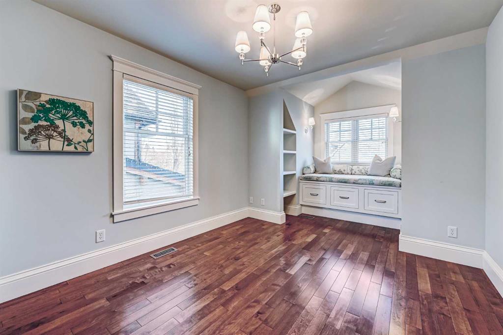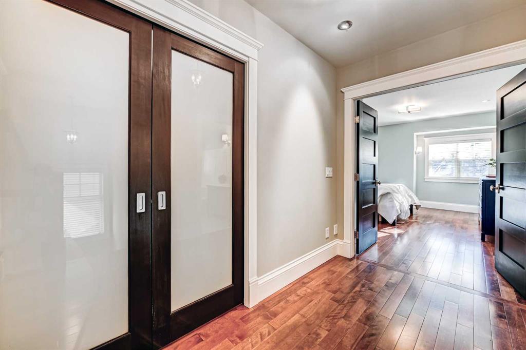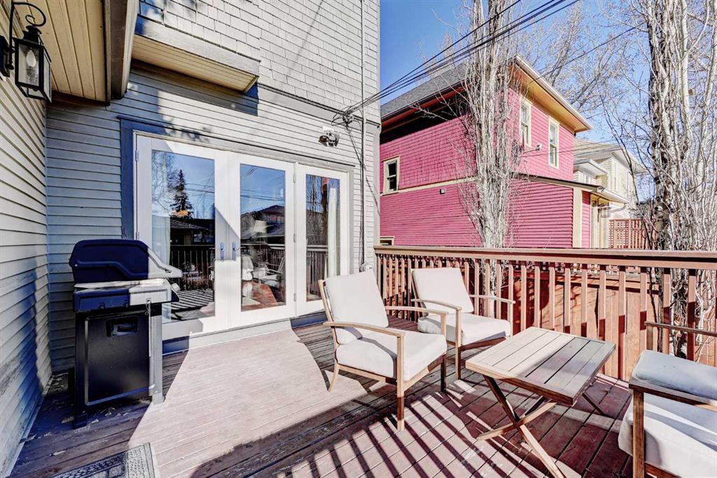 ** Open House Saturday February 14th from 11:30AM - 1:00 PM! ** Nestled in the heart of highly sought-after Hillhurst on a quiet street with a boulevard in front, this beautifully and professionally renovated character home offers the perfect blend of timeless charm and modern comfort — all on a generous 33’ x 125’ lot with a sunny south-facing backyard with A/C and just a short walk to downtown. Taken down to the studs and extensively renovated in 2008, this home preserves its heritage appeal while incorporating thoughtful upgrades throughout. The main floor features 9’ ceilings, rich gunstock-stained maple hardwood floors, and stunning coffered ceilings spanning the living, dining, and great rooms. The centre piece 2 sided fireplace separates the living room and dining room, and a striking barrel vault ceiling in the main hallway and numerous leaded glass accent windows add architectural distinction, while solid fir interior doors reinforce the home’s classic character. The custom maple kitchen offers abundant cabinetry, pantry storage, and beautiful soapstone countertops, ideal for both everyday living and entertaining. A discrete powder room and a good sized mudroom takes you to the large deck overlooking the sun drenched South facing backyard. Large French doors open from the family room to the private backyard. Upstairs, the huge primary bedroom with walk-in closet and spa inspired ensuite with heated floors overlooks the backyard. Two additional bedrooms both with built in shelving, storage, and a charming window seat provide the perfect reading nook. A dedicated office space and a second full bathroom showcasing a timeless cast iron clawfoot soaker tub and a custom-built laundry chute adds a practical touch to complete the upstairs. The exterior maintains its heritage integrity with cedar clapboard siding, a welcoming front veranda, cultured stone pillars, and period-style metal-clad wood windows. Outside, enjoy professionally designed landscaping with established perennials and bordered flower beds, new cement walkways, a 14’ x 12’ cedar deck, paving stone patio, and a fully fenced south-facing yard. Completing the property is a 22’ x 20’ double detached garage built in 2008. With a new roof (2011), air conditioning (2014), new furnace (2016) and hot water tank (2021) this is a rare opportunity to own a meticulously maintained character home in one of Calgary’s most desirable inner-city communities. Located in the heart of Hillhurst, this home offers easy access to SAIT, U of C, Foothills Hospital, and the downtown core. Outdoor enthusiasts will love this fabulous location nestled only two blocks from the banks of the Bow River Pathways. This premier location is the perfect place to call home.