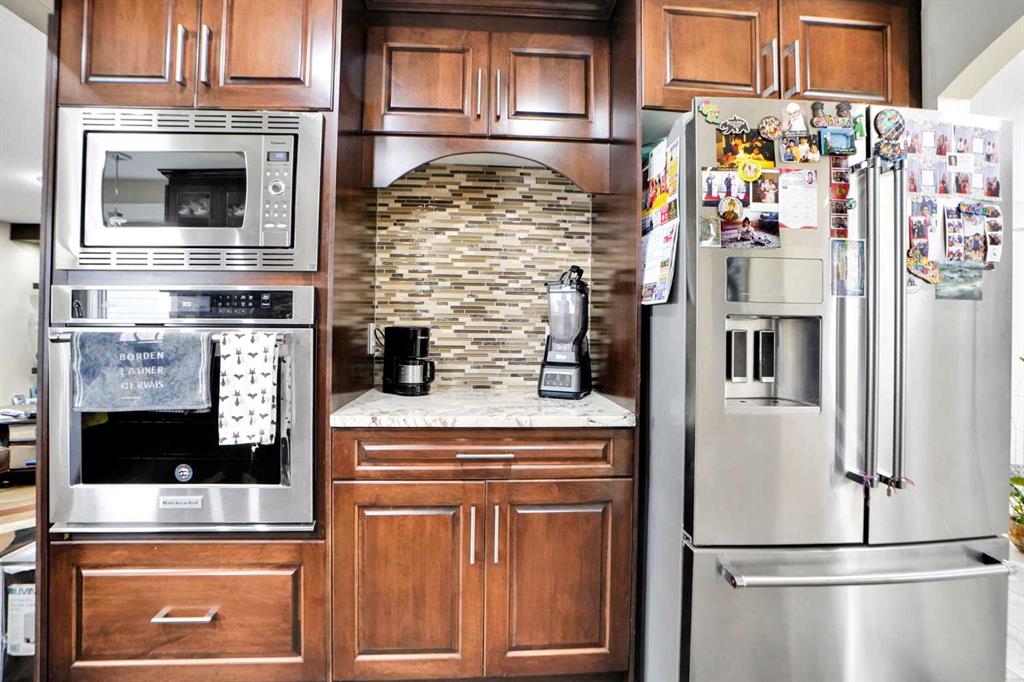 Welcome to this fully upgraded 2-storey home with a HEATED double attached garage, ideally located in the heart of the vibrant community of Coral Springs. Enjoy proximity to parks, schools, the LAKE, transit services, and easy access to major highways. Step inside to an elegant interior that showcases quality upgrades throughout. The modern kitchen features granite countertops, a spacious island, stainless steel appliances including a built-in oven and microwave, a sleek gas cooktop, and a powerful Zen Air hood fan to maintain a fresh indoor environment. The inviting familyroom features a custom-built-inn fireplace and entertainment unit, creating the perfect space for relaxing or hosting guests. The dining area opens through patio doors to a glass-covered deck, ideal for enjoying the backyard year-round. The main floor also includes a convenient laundry room. Additional features include central air conditioning for summer comfort and a central vacuum system for added convenience. Upstairs, you’ll find a total of 4 bedrooms, including a spacious primary bedroom with a 5-piece ensuite. A second full bathroom serves the remaining three bedrooms. The decorative stair railing adds a touch of elegance and enhances the home’s rich interior appeal. The fully finished illegal basement suite with a separate entrance offers excellent income potential or space for extended family. It includes a recreation room, two generously sized bedrooms, a 4-piece bathroom, a kitchen. Professionally completed exterior concrete steps add to the home’s curb appeal and functionality. This property is perfect for a large family and offers fantastic rental potential. Be the first to view this exceptional home — call your favourite REALTOR® today. Don’t miss this opportunity!