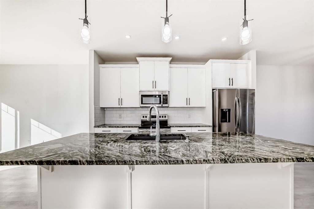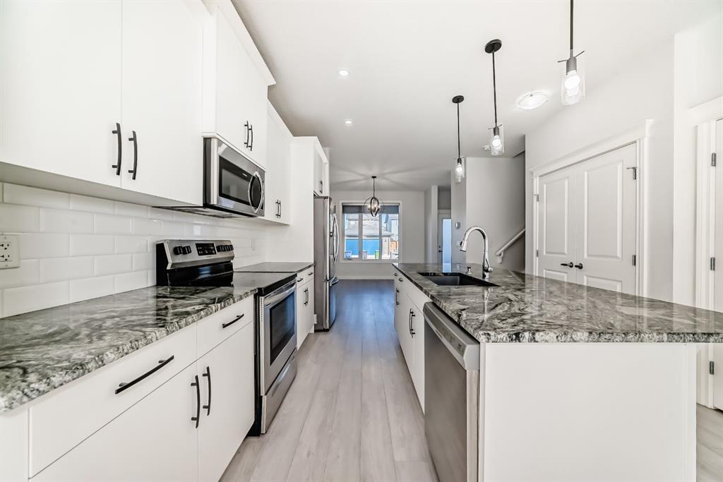 Step into this beautiful home in the charming community of Evanston on a traditional lot! This 3-bedroom, 2.5-bathroom house perfectly blends style, comfort, and functionality. The main floor welcomes you with a bright and open living space, ideal for family gatherings or entertaining guests. The modern kitchen features stainless steel appliances, a large island, and a pantry, seamlessly connecting to the dining and living areas. Large windows flood the space with natural light, creating a warm and inviting atmosphere. A convenient powder room completes the main level. Upstairs, the primary bedroom is your private retreat with an ensuite and walk-in closet, while the two additional bedrooms are spacious and versatile. Common bathroom and upstairs laundry add to the home's convenience. The unfinished basement comes with a separate entrance, 9-foot ceilings, and rough-ins, offering plenty of options to create the space of your dreams. Located close to shopping plazas, parks, playgrounds, walk-in clinics, and easy access to Stoney Trail, this home combines modern living with community convenience. Be the first to make this gorgeous house your dream home!