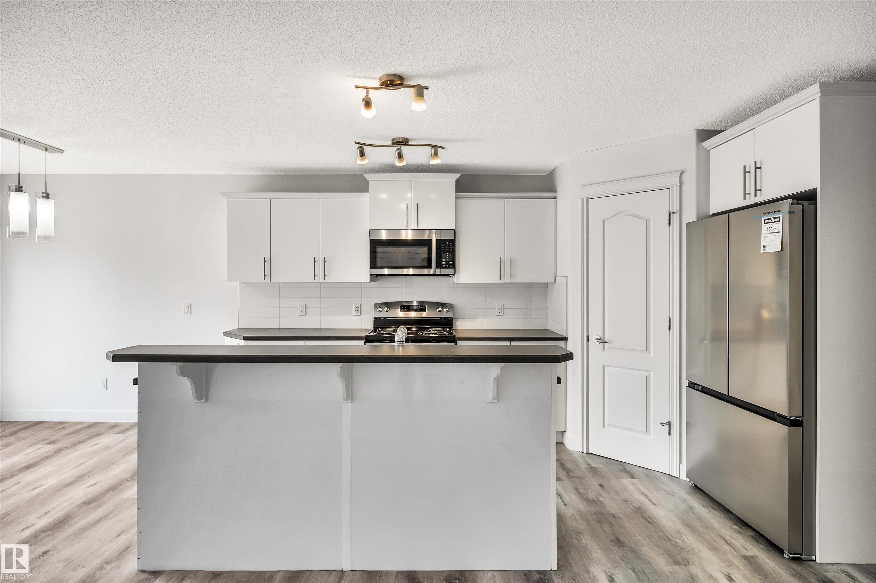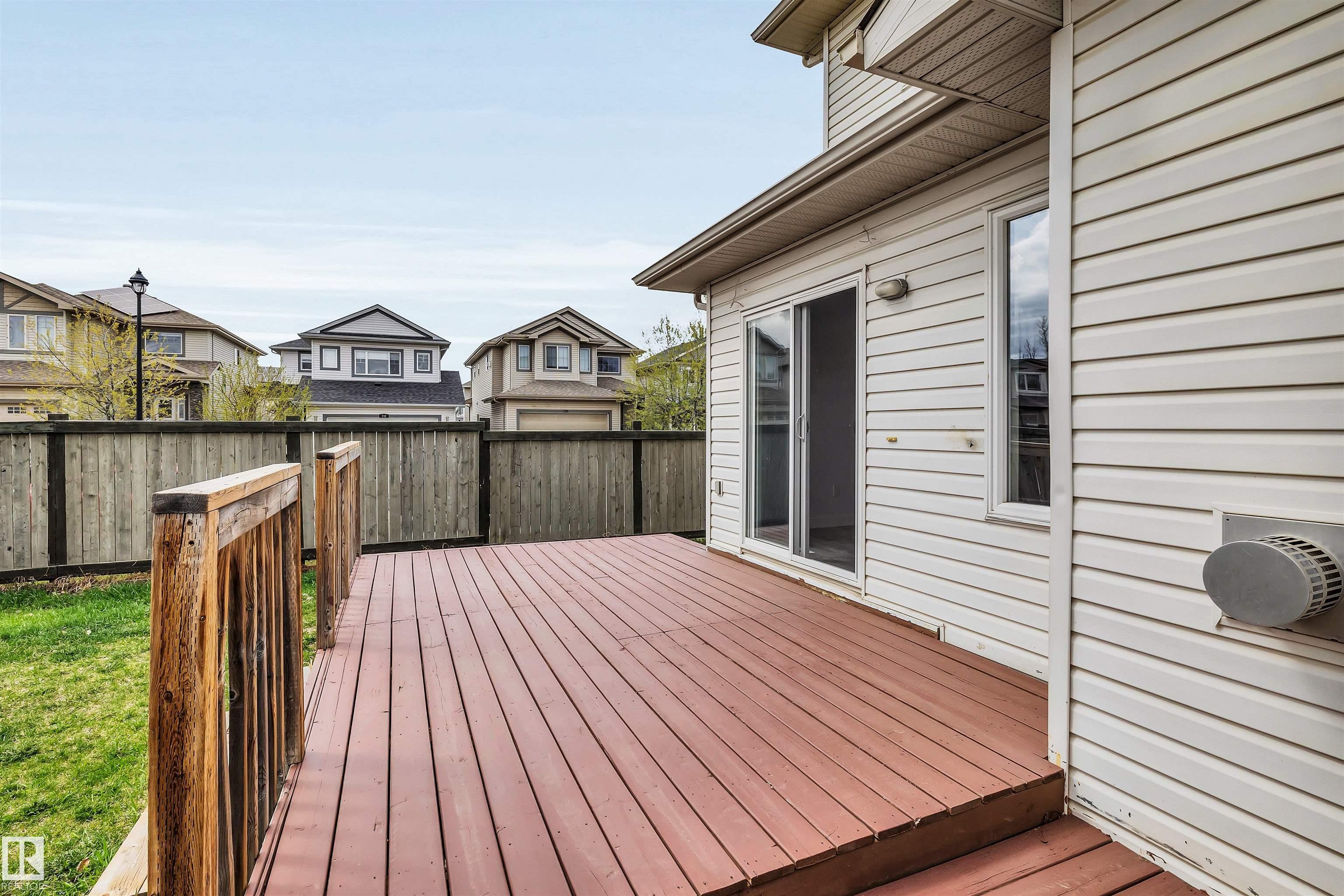 Welcome to this beautifully maintained 3 beds, 2.5 bath half duplex with single attached garage, perfectly situated on a quiet cul-de-sac in the heart of Windermere. The main floor boasts an open-concept layout featuring a spacious eat-in kitchen with clean, well-kept cabinets, a pantry, & a raised dining bar. The cozy living room is warmed by a gas fireplace. while the dining area opens to a large deck & a fully fenced, landscaped backyard with a fire pit. Upstairs, the spacious primary suite includes a walk-in closet & a private 3-piece ensuite. 2 additional bedrooms & a full bathroom complete the upper level, offering plenty of room for children, guests, or a home office. The partly finished basement adds extra living space or storage. RECENT UPGRADES: new kitchen appliances, new vinyl plank flooring on main floor, and roof shingles replaced in 2023.