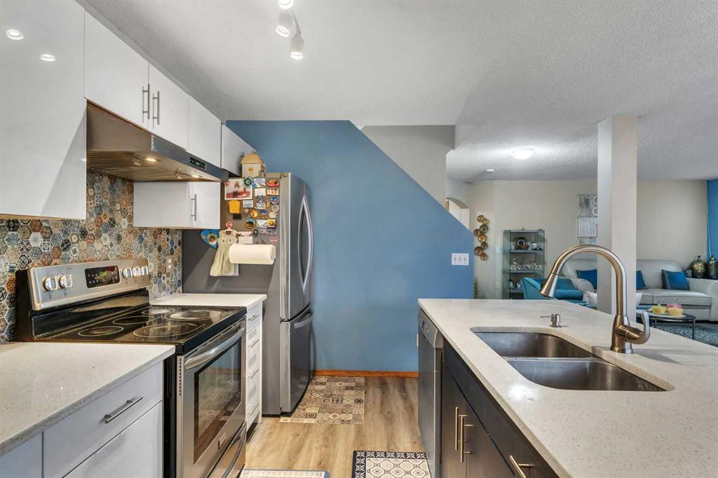 Discover exceptional value and comfort in this meticulously maintained home, perfectly situated on a quiet street just steps from shopping, schools, parks, and public transit. Set on a generous, fully fenced lot with mature landscaping, a spacious deck, and no neighbours behind, this property offers both privacy and convenience. The inviting main level welcomes you with a warm, open entryway that flows into a bright and comfortable family room featuring a stone-accented gas fireplace. The well-designed kitchen includes a corner pantry, ample cabinetry, a centre island with breakfast bar, and a large dining nook overlooking the backyard—an ideal layout for everyday living and entertaining. A conveniently located powder room completes the main floor. Upstairs you’ll find two well-proportioned bedrooms, a full bathroom,built-in shelving, and a dedicated laundry area. The primary suite serves as a true retreat, highlighted by vaulted ceilings, a walk-in closet, and a private 4-piece ensuite. The fully developed lower level adds even more living space, offering a generous recreation room, a full 3-piece bathroom, and a storage/furnace room. Additional features include air conditioning, tile flooring. Pride of ownership is evident throughout—this home is move-in ready and sure to impress.