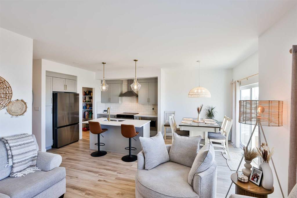 Better than brand new! Have you been looking for a new home, but the thought of putting the finishing touches on it is too daunting?! This is the one for you! Air conditioning? Check. Front and rear landscaping? Check. Fully fenced? Check. Window coverings? Check. Washer and dryer? Check. Framing the basement? Check. Not only did this wonderful seller finish off all these things for you, they also upgraded a few things to elevate this home. Sleek glass railing, not one but TWO fireplaces, finishing the stairwell to the basement, permanent Christmas lights, extra built in shelves in the pantry, and the best looking garage you’ve seen in awhile… it’s fully finished complete with paint, upgraded flooring, and incredible built in shelves you need in your life. This two storey home is wonderfully designed. Through the front door you enter in to a large sunken foyer, then up a couple steps in to your bright, open main floor. The kitchen boasts quartz countertops, stainless steel appliances, an island with good working space, and a walkthrough pantry with extra shelves. You’ll love the fireplace in the living room with modern detail, making this space feel extra cozy! The glass railing flows nicely from the main to second floor and really does provide the wow factor and makes things feel higher end. The bonus room greets you at the top of the stairs, with another electric fireplace to make game nights and spending time together as a family even more cozy. Two bedrooms, laundry, and a full four piece bathroom are on the second floor as well as your primary bedroom. The primary features an incredible vaulted ceiling which totally transforms this space, and gives you your own oasis. Huge windows flood the entire space with glorious natural light. A nice size walk in closet and ensuite with walk in shower complete the space. We really need to talk about the garage… it’s extremely tall, and the built in bin storage system is incredible. It’s finished to paint stage, has upgraded flooring, and is roughed in for a heater if ever you want one. Outside is fully finished with front and rear landscaping, and is fully fenced as well. Just bring the dog and they’ll have all the room to roam! Located just a quick couple minutes walk to the phenomenal Legacy Park, you will absolutely love this neighborhood. This park is over 70 acres and features an epic playground, several paved walking paths, a spray park, sports courts, skate board park, picnic shelters, a sledding hill, a pond and wetlands, and a community pavilion. Your kids will practically live at this park year round! This home is also located close to schools, groceries, pharmacies, restaurants, and more. Give your REALTOR® a call and come see this practically brand new home with flooded with upgrades.
