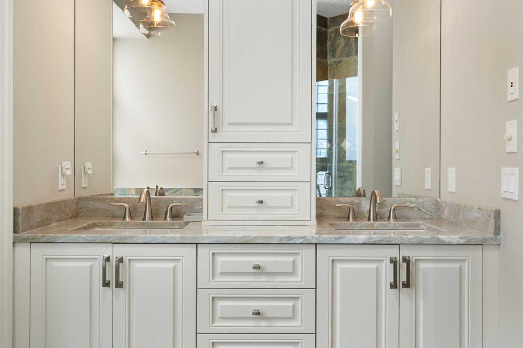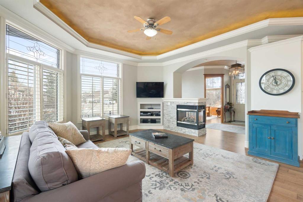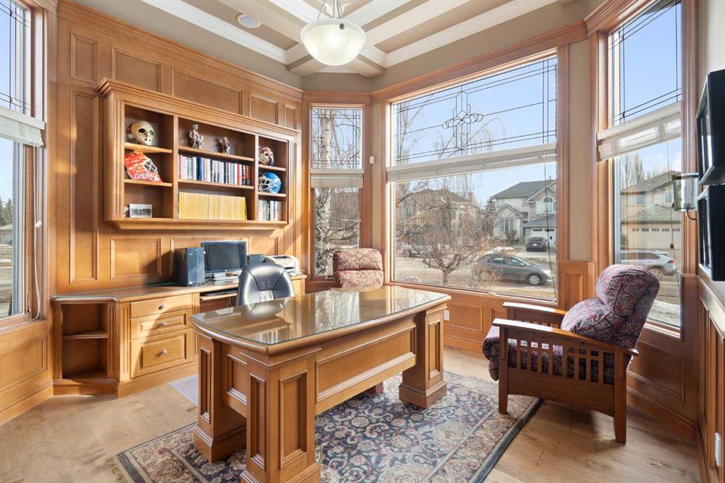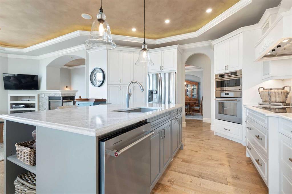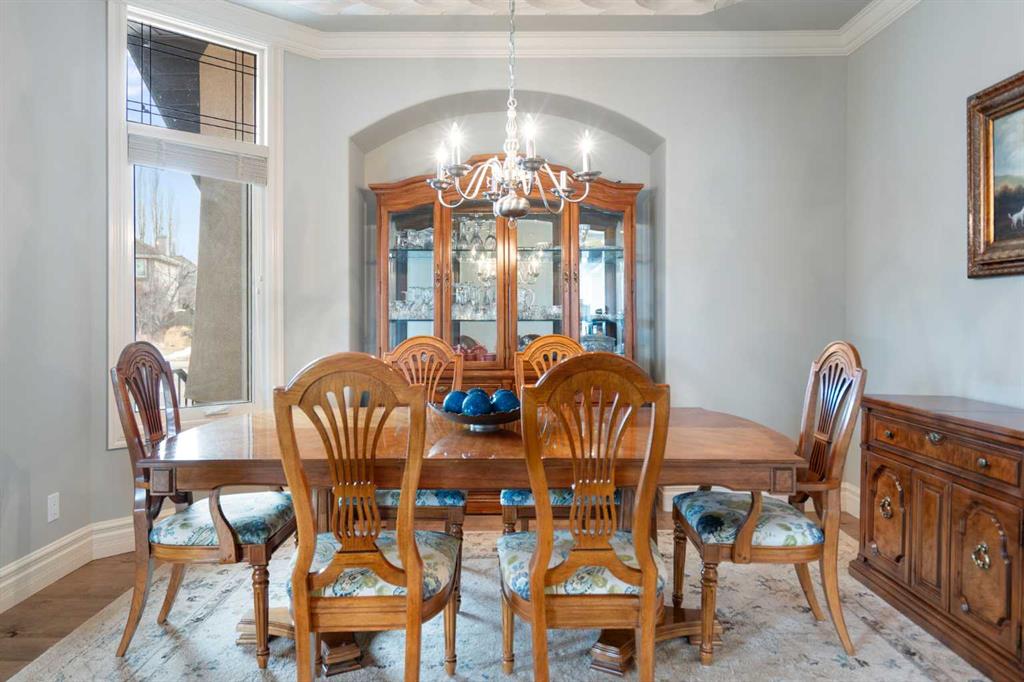 Meticulously updated in 2017, this stunning custom-built ShowHome by California Homes occupies a prime corner lot in the highly sought after Evergreen Estates, seamlessly combining timeless elegance with modern sophistication. Boasting over 3,300 sq. ft. of beautifully finished living space, the home offers 4+1 spacious bedrooms, 3 bathrooms, a triple attached garage, in-floor heating on the lower level, a wet bar, Wine room, an irrigation system, central air conditioning and MORE. The extraordinary backyard is designed with maintenance free living, featuring grey paving stones artfully arranged in circular patterns, while the front driveway and garage share the same premium paving, uniting the home’s exterior with understated sophistication. Step through the welcoming entry and experience immediate architectural elegance. Rich engineered hardwood flooring lead to the formal dining room, where a multi-tier tray ceiling with intricate detailing and decorative crown moulding that commands attention. Graceful archways frame the space, creating the perfect setting for both intimate dinners and grand entertaining. The chef’s dream kitchen is a masterclass in design and functionality, with custom maple cabinetry accented by crown moulding throughout the home, premium granite countertops, a generous central island, and newer (2022) stainless steel appliances package. Expansive windows bathe the main floor in natural light, creating a bright, warm, and inviting atmosphere throughout. The main level is further enhanced by a spacious home office that can be easily converted into a guest bedroom. A thoughtfully designed mudroom with the additional cabinetry for storage, blending style with practicality. The primary suite on the main floor offers a serene retreat, featuring a spa like 5 pc ensuite with jetted tub, dual vanities, and an expansive walk-in closet. Ascend to the fully finished lower level, with 3 additional generously sized bedrooms, a massive family/game room(pool table included), a 4-piece bathroom, and a well-appointed wine room with a wet bar. In-floor heating for added comfort and warmth. Located in an unmatched setting, that offers effortless access to schools, shopping, public transit, with seamless access via Stoney Trail, while the natural beauty of Fish Creek Park is just moments away. Rarely does a property of this caliber come to market, schedule your private showing today to experience it for yourself.