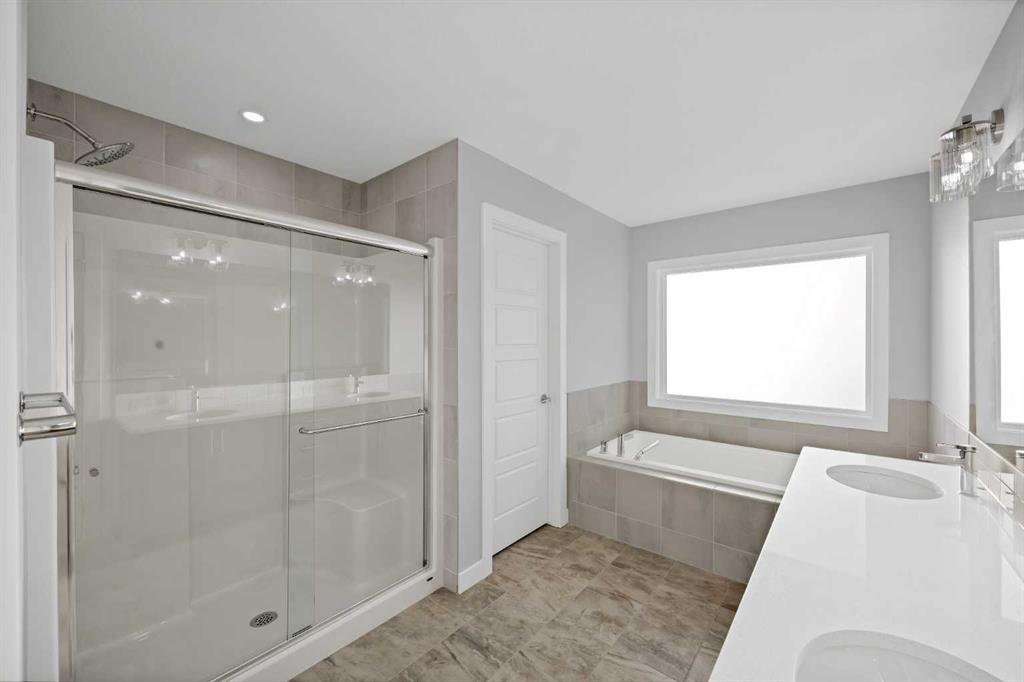 2-BEDROOM LEGAL SUITE | BRAND NEW HOME | SPICE KITCHEN | MAIN FLOOR BEDROOM & FULL BATH | 2 PRIMARY BEDROOMS | 2 LIVING AREAS/ NO NEIGHBOURS BEHIND. Welcome to this stunning brand-new home nestled with almost 3500 sqft of living space in the charming neighborhood of Homestead, NE Calgary. Offering an expansive and functional layout, this property is ideal for large families, multi-generational living, or anyone seeking generous living space with modern convenience. The main floor showcases a bright, open-concept design with multiple functional areas. At the front, a large living room welcomes you with abundant natural light. Adjacent is a well-sized main-floor bedroom—perfect for guests, extended family, or a private office—along with a conveniently located full 4-piece bathroom. The heart of the home features a spacious kitchen with ample cabinetry and prep space, complemented by a separate ?S?PICE KITCHEN for added functionality. A central family room? with ELECTRIC FIREPLACE provides the perfect setting for everyday relaxation, while the adjoining dining area offers plenty of space for family meals and gatherings. A welcoming foyer, large hallway, and direct access to the attached double garage complete this level. Upstairs, the home continues to impress with four generously sized bedrooms, a versatile bonus room, and a dedicated laundry room. The expansive primary suite includes a spacious bedroom, a private 5-piece ensuite, and a walk-in closet. A second bedroom also features its own 4-piece ensuite and walk-in closet—an excellent setup for growing families. Two additional bedrooms share a full bathroom, thoughtfully positioned down the hall. The bonus room separates the primary retreat from the secondary bedrooms, offering added privacy and flexibility for use as a media room, study area, or play space. With five bedrooms above grade, multiple living areas, and a family-focused layout, this home provides outstanding comfort and flexibility. The fully ?L?EGAL 2- BEDROOM SUITE features its own private entrance and 9-foot ceilings, along with a full bathroom, two generously sized bedrooms, a well-appointed kitchen, a spacious living area, and separate laundry facilities—making it ideal for rental income or extended family living. Some of the photos are virtually staged. Located in an emerging community with parks, pathways, future amenities, and convenient access to major routes, this property offers exceptional value and long-term potential. Book your private showing today!
