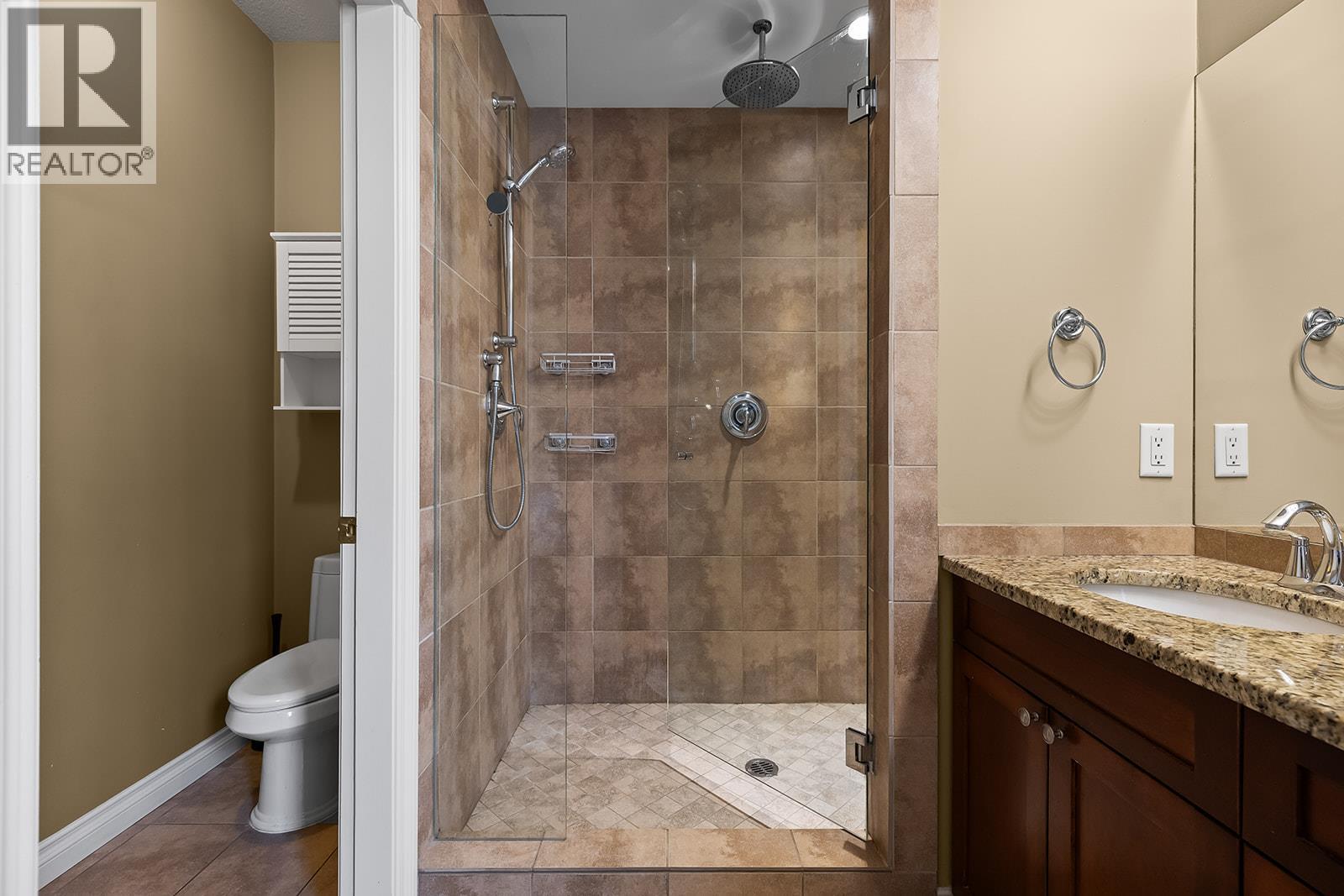 FAST POSSESSION. Located at Quail Ridge's most prestigious street, this walk out rancher presents a unique combination of curb appeal, functionality and practicality. Featuring 4 bedrooms (could be 5) and 3 bathrooms this is a rare home with 2 separate garages each fronting a different street. Both garages have 10ft high doors and 12 ft' ceilings and both are heated in case you perhaps wanted to add a golf simulator or a games room? On top of that there's an additional 7 outdoor parking spaces and RV/boat parking. Upstairs, your will find 2 bdrms and 2 bths, an open concept kitchen and great room with maple cupboards and granite counter tops adjacent to an expansive concrete and covered deck perfect for entertaining and soaking in valley and mountain views. Downstairs you will find a newly renovated non conforming 2 or 3 bedroom in law suite with separate entrance that could come with it's own garage and extra parking. The landscaping on this property is dialled in as the front yard is zero maintenance with artificial turf, while the back yard is a little oasis with fire pit, and a gazebo covered hot tub. And as if this listing wasn't 'hot' enough, a brand new top of the line furnace was installed in 2025; the roof is concrete shingles with a 35 years warranty still remaining; and much of the home has been recently painted. Quail Ridge offers golf courses, restaurants, shopping, hiking trails and is adjacent to the airport and UBC-O. Call your agent of choice today and book your viewing.....