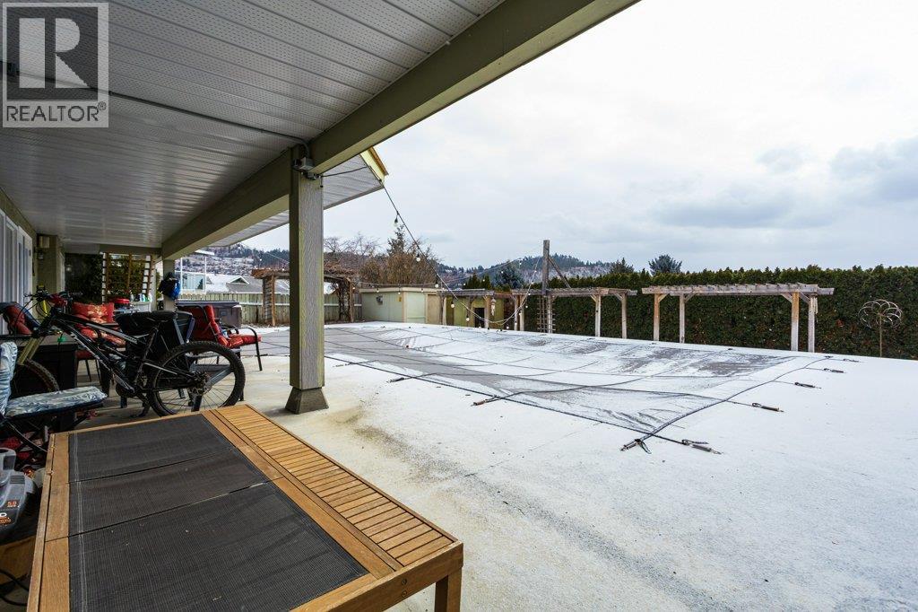 Centrally Located Walk-Out Rancher with Solar System, Pool & Views in Glenmore! Spacious and bright, this 5bedroom walk-out rancher is tucked away on a quiet street in Glenmore, just minutes to downtown. Enjoy beautiful lake, city, and mountain views from the main living areas and the expansive deck overlooking the heated in-ground pool. The main floor features hardwood flooring and a stunning kitchen with granite countertops, a large island, and gas range, perfect for entertaining. The generous living room captures panoramic views, while the primary suite offers a luxurious 5-piece ensuite with glass shower, double soaker tub, and heated tile floors. The light-filled walk-out basement includes a gas fireplace, summer kitchen, three additional bedrooms, and a convenient Jack-and-Jill bathroom, ideal for family or guests. This home is equipped with a 18000 Watts solar system effectively shrinking your power bills down to a minimum. Other major upgrades include a new furnace and A/C (2024), HWT (2024), new deck surface (2025) and a new hot tub (2025). The beautifully landscaped backyard and heated pool create the ultimate Okanagan lifestyle setting. The perfect home in the perfect location—come make it yours today!