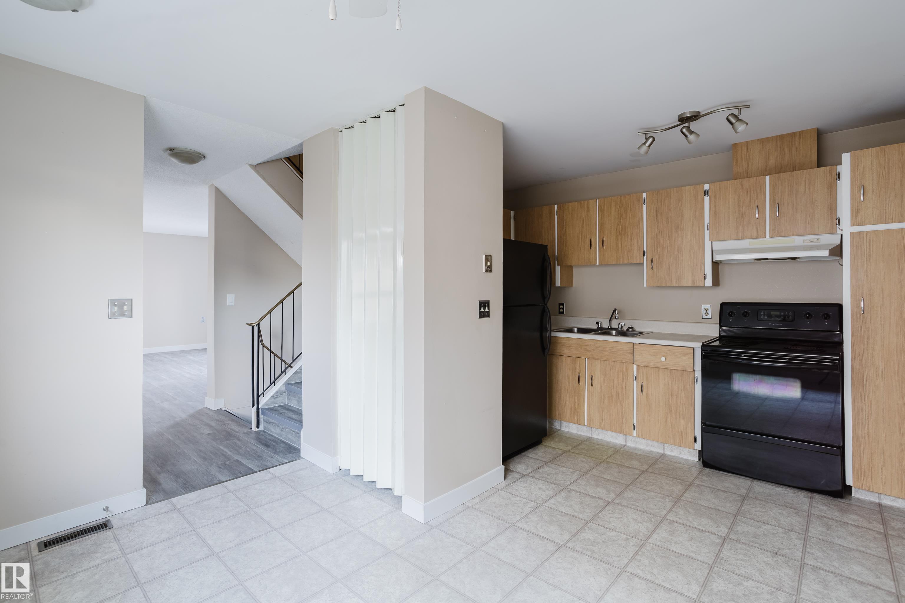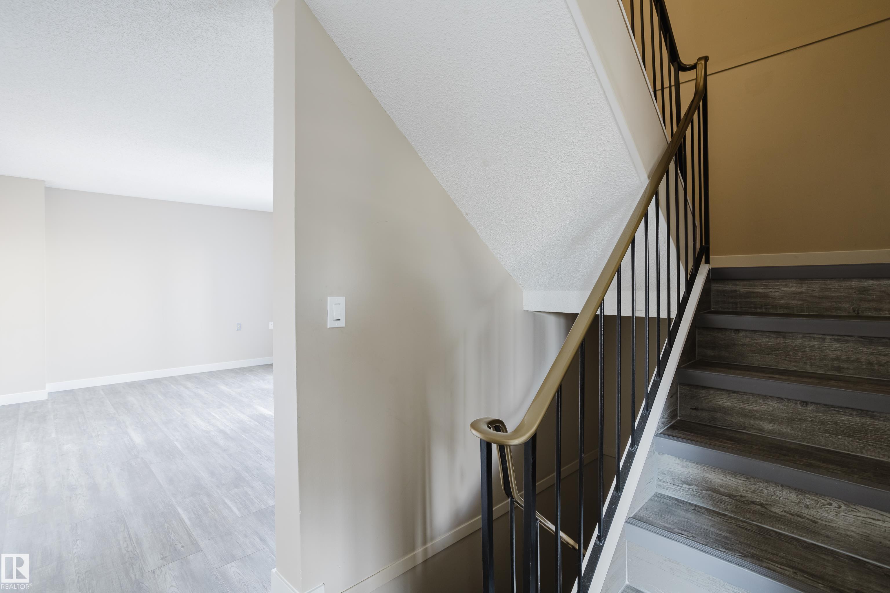 End unit townhouse. 860ft2, 2-bedroom, 1-bathroom 2-storey in Lago Lindo. Large bedrooms, good sized fenced yard. New flooring throughout. Partially finished basement - just needs flooring and a drop ceiling. Quiet community with no through-traffic. Pet friendly condo board. Tidy condo complex with low fees! Close proxmity to walking trails around two lakes and off leash park.