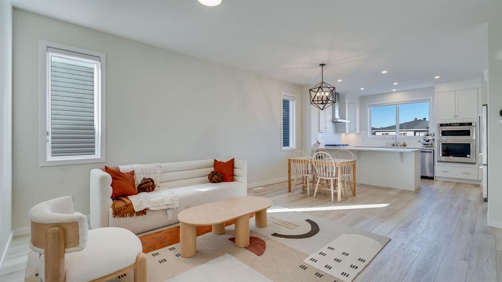 Nestled on a highly sought-after garden lot, one of the community's rarest and most desirable placements, this stunning Jayman-built home offers an unparalleled lifestyle. Directly out your front door lies a sizeable, sprawling green space, providing a private park-like setting for children to play and a front-row seat for community events like family movie nights. Step inside to discover a residence in truly meticulous, "better-than-new" condition. You are immediately greeted by an impressive entryway with 9-foot ceilings and beautiful laminate flooring. A convenient home office and half-bath are perfectly situated off the foyer. The open-concept design seamlessly connects the living room, dining area, and the stunning upgraded kitchen a chef's delight featuring quartz countertops, a gas cooktop, built-in oven, and a massive walk-in pantry. A door off the kitchen leads to a large deck, ideal for relaxing while overlooking the community. Upstairs, the home continues to impress with a spacious bonus room, perfect for a media center or playroom, along with three well-appointed bedrooms. The primary suite is a true retreat, boasting an extremely spacious layout, a luxurious four-piece en-suite bathroom, and a large walk-in closet. Completing this level is a practical and spacious laundry room. The fully finished, walk-out lower level presents incredible potential, featuring a fourth bedroom, a full bathroom, and a large family room—an ideal space for a games area, a recreational haven, or even a potential suite. Outside, enjoy a maintenance-free backyard and a large double detached garage (22' x 20') with paved lane access. Built with efficiency in mind, this home includes a high-efficiency furnace, tankless water heater, and is solar-ready. Plus, there is a water softener and dechlorinator and radon system. If you are searching for a special, turnkey family home in a prime location, your search ends here. Contact your favorite realtor to schedule a private viewing today.