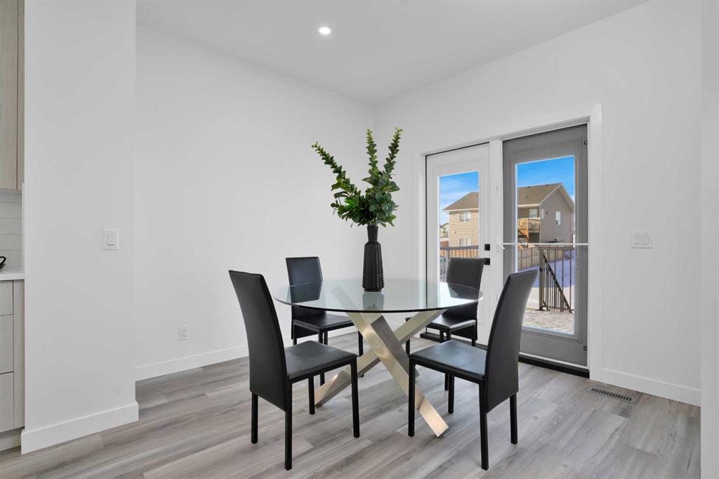 Welcome to the RUBY built by Award Winning Abbey Platinum Master Built on the highly desirable Palmer Circle in Blackfalds. This 1586 sq foot 2 storey has an amazing modern sight lines and curb appeal with stunning brick accents, wood grain metal siding . A spacious entrance greets you as you enter this 3 bedroom 2.5 bath home. An open floor plan , living room with a fireplace , large kitchen with amazing backsplash and quartz countertops . As you take a walk upstairs you will find a Primary bedroom with a 3 pcs ensuite, as well as 2 more ample sized bedrooms and a 4 pc bath. This home has an upstairs laundry are for added convivence. The unfinished basement features 9 foot ceilings and can accommodate a 4 pcs bath, family room and a bedroom, just add your own creative design.