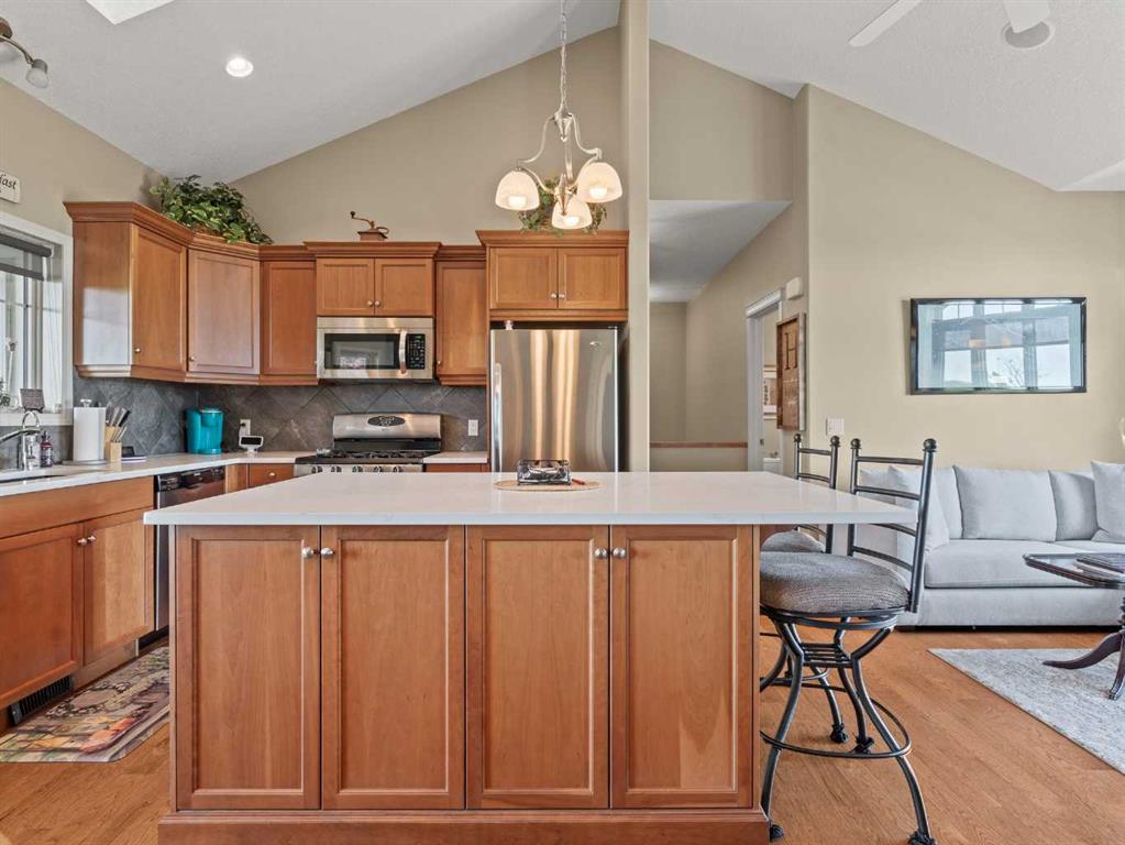 **MOUNTAIN VIEWS ** 5.14 ACRES**2 HOMES IN ONE** 54'x32' SHOP** HEATED POOL** Unique opportunity to have a custom built 2 STOREY HOME attached to a BUNGALOW. ~Multi family generational living at its finest~ This exquisite property has been immaculately maintained and is ready for its new owners. Step inside to this Air-conditioned , showhome like setting - and embrace the feeling of comfort. The updates through out the home shine through as you step through the main living area on the beautiful luxury flooring. Huge windows allow plenty of natural light and views of the big Alberta Skies. The beautifully presented kitchen is the true heart of the home featuring upgraded appliances, loads of cabinetry, and a large sit up island. A perfect place to entertain guests with an open floorplan that combines , living, dining, and kitchen in one space. The upper level boasts a primary suite suited for king sized furniture, and a renovated ensuite with 2 way fireplace. Enjoy the views in this tranquil setting while relaxing in a space that you will not want to leave. The architecture of the rooflines on this home will capture your eyes and your heart. 2 more large bedrooms and a full bathroom complete this upper level. The lower walkout level gives a good place for a recreation area, gym, home based business, or whatever your needs may be. The bungalow "wing" of this expansive home provides a full second living area. The large kitchen, vaulted ceilings, huge amounts of natural light, and open floor plan, make this cozy space the perfect place to settle into. This part of the home offers 1 bedroom up plus ensuite and 2 piece bathroom. The lower level walkout has 2 more bedrooms, another full bathroom, and a huge living space. After falling in love with the interior of this home you are definitely going to love the outdoor space. With 2 upper decks, 2 front porches 2 lower patio spaces, a covered gazebo sitting area, a poolside pergola deck overlooking the stunning heated pool, an outdoor fireplace , this place is made for entertaining, staying home, and making memories! The 54 x 32 shop is icing on the cake. Immaculate landscape, mature trees, triple heated garage wide open spaces- there is truly something for everyone at this exceptional property. Send the kids on the bus right from your driveway, this is a quick commute to Calgary and Okotoks. Become a part of the Davisburg community and enjoy their events just down the road from home. THIS PROPERTY IS TRULY THE CHANCE OF A LIFETIME ...