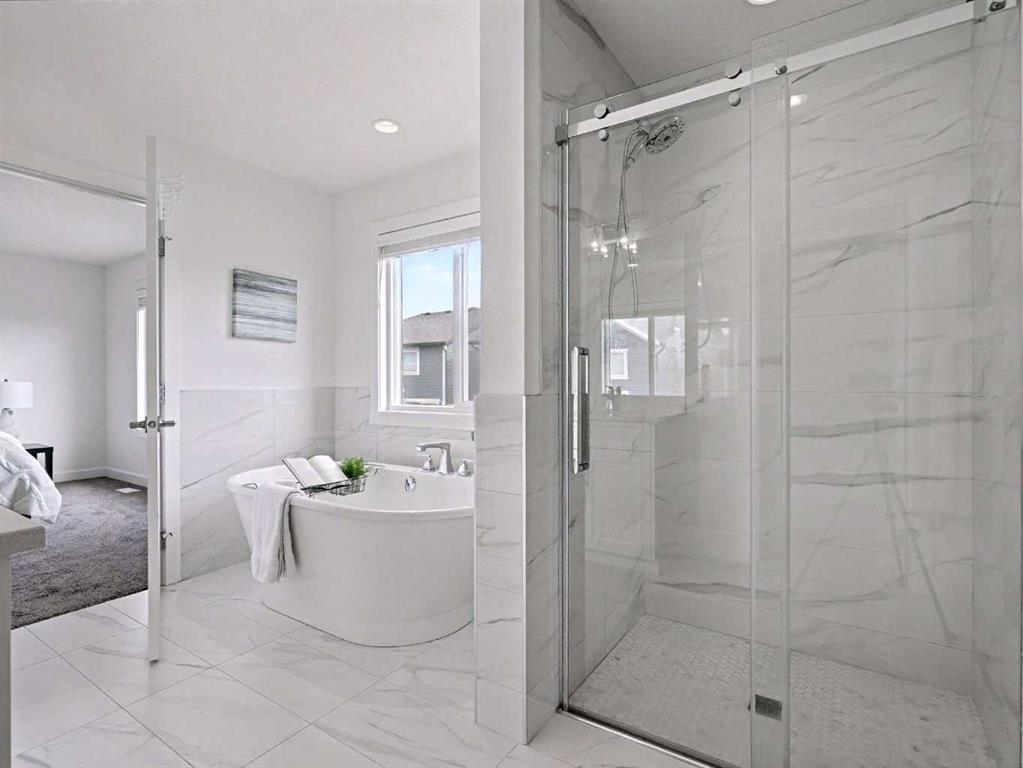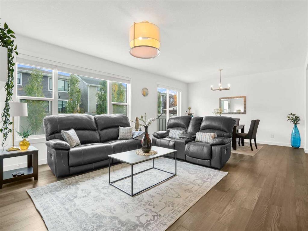 Premiere Video Tour available. Exceptional Value in Sought-After West Springs! This stunning, fully finished detached 2-storey home offers over 2,900 sq ft of thoughtfully designed living space. Located on a quiet cul-de-sac, it features a double attached garage and an additional 2-car driveway, complemented by exceptional curb appeal—from the inviting covered front porch to the refined interior layout with a vinyl deck and concrete patio. Step into the elegant foyer and flow into the expansive great room, anchored by a gas fireplace with floor-to-ceiling tile and a classic mantle—perfect for cozy evenings or entertaining guests. The chef’s gourmet kitchen is a standout, showcasing a walk-through pantry, island with eating bar, and abundant storage and prep space. It seamlessly connects to a bright dining area with direct access to the back patio, making indoor-outdoor living a breeze. A dedicated office, mudroom, and convenient half-bath complete the main floor. Upstairs, retreat to the luxurious executive primary suite, complete with a spa-inspired ensuite featuring a stand-alone soaker tub, elegant walk-in shower, upgraded double vanity, and a generous walk-in closet with upgraded shelving. Three additional bedrooms with upgraded shelving and a stylish full bathroom with double vanity provide comfort and space for a growing family. The 9 feet fully finished basement offers even more room to relax and play, with broad staircases, two spacious bedrooms, a full bathroom, and a large recreation room ideal for movies, games, or a home gym. Located in West Springs, this home is close to top-rated public and private schools including ST. JOAN OF ARC School, scenic parks, boutique shopping, and every amenity your family needs. Don’t miss your chance to own this incredible home—contact us today to schedule a private showing. It won’t last long! Here are extra bonuses: Kinetico Water Filtration Systems, Extended Garage width and Titanium Shelving upgrade throughout