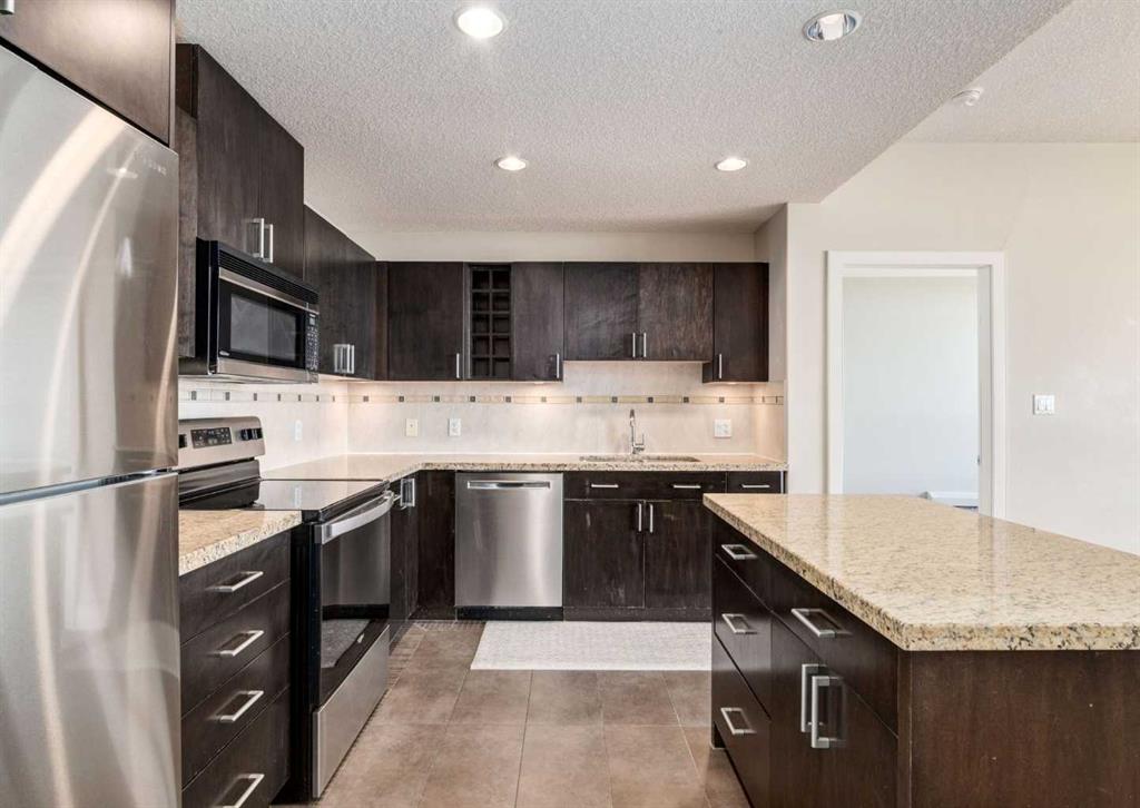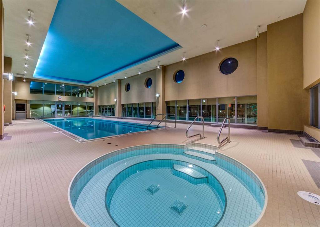 Experience breathtaking views of downtown Calgary, the Bow River, and the rolling greens of Shaganappi Golf Course from this stunning 2 bed & 2 bath residence at Encore. Perched high above the city, this corner unit captures the best of modern condo living - combining style, comfort, and convenience in one exceptional package. From the moment you step inside, you’re greeted by an abundance of natural light streaming through expansive floor-to-ceiling windows that frame sweeping panoramic views. The open-concept living area offers a seamless flow between the kitchen, dining, and living spaces, creating the perfect setting for both quiet evenings and lively gatherings. Step out onto your private balcony and enjoy morning coffee or evening sunsets while taking in the dazzling city skyline and serene golf course below - a view that never grows old. The kitchen is sleek and functional, designed with rich stained maple cabinetry, granite countertops, and a full suite of black appliances. A raised breakfast bar adds both elegance and practicality, ideal for casual dining or entertaining. The atmosphere throughout is airy and inviting, with a modern yet timeless aesthetic that suits a variety of tastes and lifestyles. The primary bedroom is a private retreat with ample closet space and a beautifully appointed ensuite featuring granite counters and contemporary fixtures. A second bedroom and full bathroom provide flexible space for guests, family, or a home office. The in-suite laundry and storage area add everyday convenience, while central air conditioning ensures year-round comfort. Encore residents enjoy access to an impressive collection of amenities that elevate daily living. Relax or stay active in the large indoor swimming pool, unwind in the hot tub, or keep fit in the fully equipped gym. The building also offers a games room, bike storage, an underground storage locker and a 24-hour on-site security - all designed to make life easier and more enjoyable. Parking is effortless with your own heated underground stall, keeping your vehicle safe and warm during Calgary winters. The location is second to none - the Westbrook C-Train Station is right across the street, providing quick access to downtown and beyond. You’re also just steps from Westbrook Mall, Safeway, Walmart, cafés, and restaurants, ensuring that shopping and dining options are always close at hand. Whether you’re a professional seeking an easy commute, a first-time buyer looking for quality and value, or an investor searching for a standout property, this home offers an unbeatable combination of modern living, luxurious amenities, and unparalleled views. Every glance out the window reminds you why this address is truly one of Calgary’s best-kept secrets.