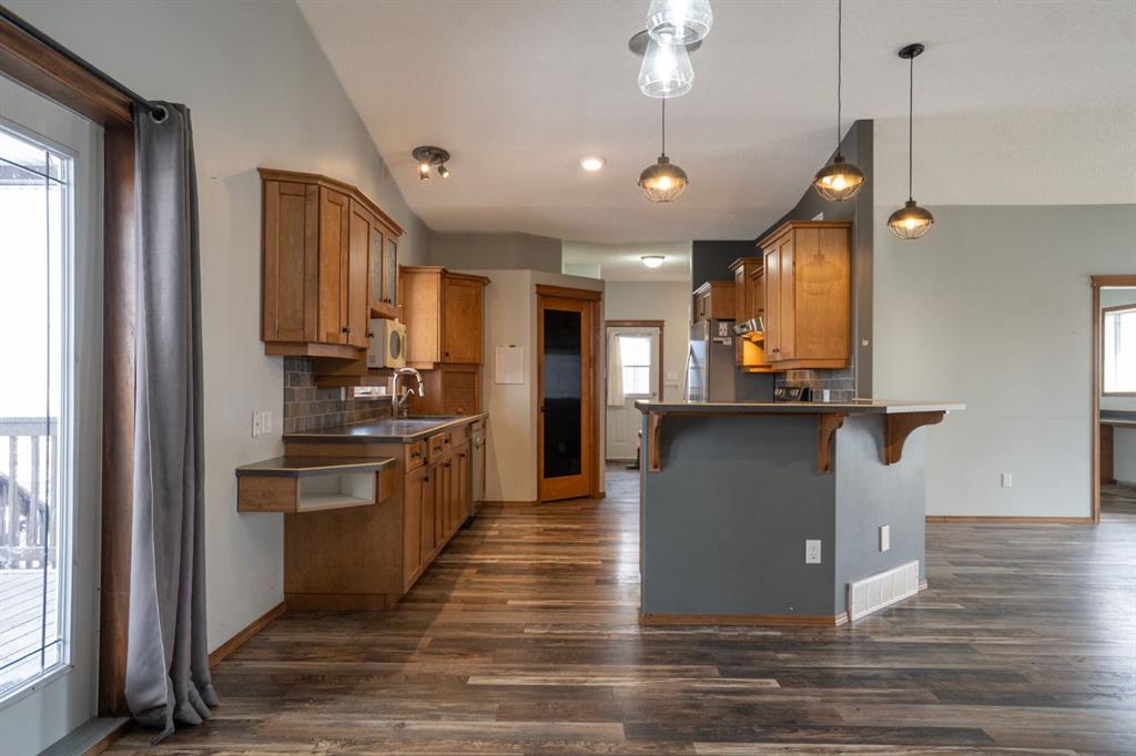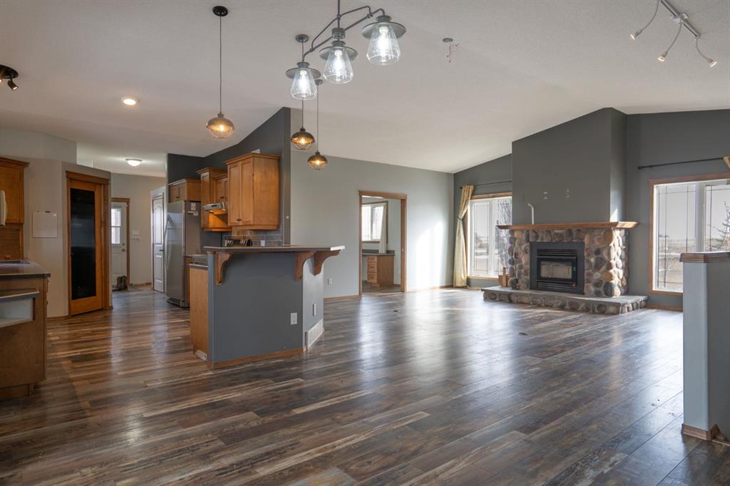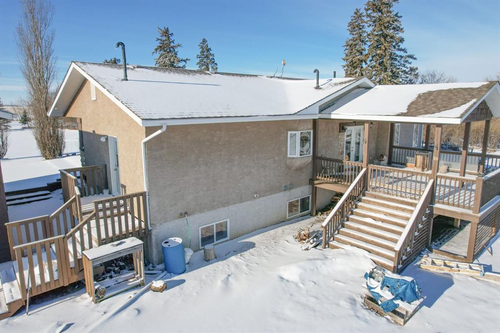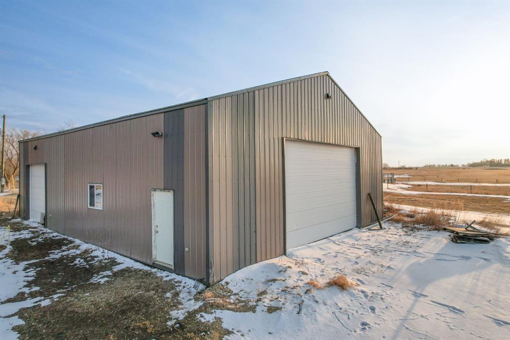 WELCOME TO ALBERTA! What a pleasure it is to offer this beautiful 16 acre parcel with everything somebody in the rural lifestyle is going to want! A 2005 home with high ceilings a great layout, four bedrooms, open concept featuring a stone fireplace, and an amazing covered back deck to take in the beautiful Alberta countryside. Great big master bedroom with west facing French doors and its own deck, very large walk-through closet, separating the bed room from the five piece en suit. Downstairs with a high ceilings and large windows has the family room feeling bright and open two bedrooms on one side and off to the other side is another bedroom, a three-piece bathroom with a separate two-piece water closet. Last, but certainly not least, a spectacular theatre room! Also offering a 22’x24’ detached garage with covered wraparound porch and second storey bonus room. Additionally, a beautiful 40’x52‘ shop with metal roof/siding, 220 power, and a 20’ wide door to get equipment or big projects through. The property was originally the homesite of a large cattle operation and still offers associated infrastructure, including wind fences and water bowls. The owner developed to spot to begin a market garden, focused on garlic, and added a processing room to the detached garage for the same. The landscaping is top notch, making the property ready for you to just bring your bags and move in. I saved the best for last this acreage is just a half a mile from one of Alberta‘s most beautiful natural wonders, the head of the great Canadian badlands. At It’s finest, this is Alberta, Amen!