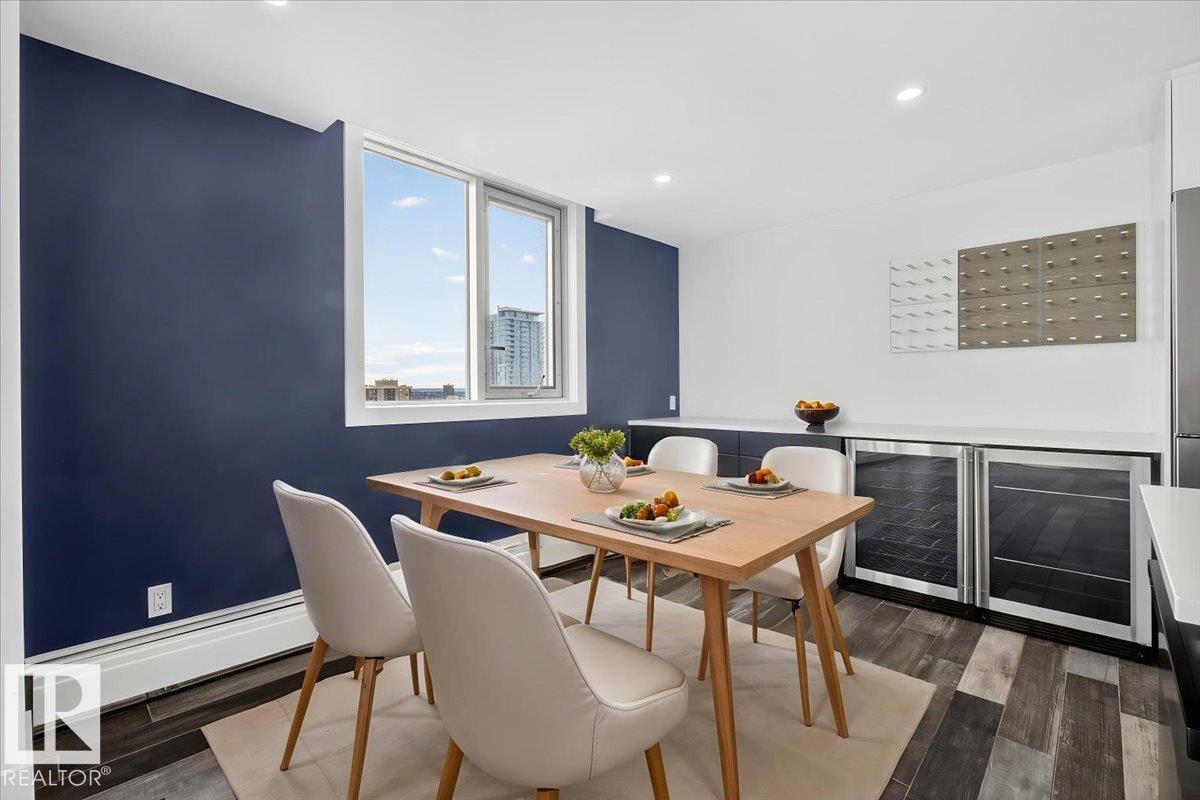 Experience refined luxury in this executive penthouse just steps from Edmonton’s river valley, where lifestyle and location come together effortlessly. This exceptional home features two private balconies with stunning views of downtown and the river valley, perfect for morning coffee or evening wine. The gourmet kitchen impresses with quartz countertops, abundant cabinetry, pot filler, bar fridge, and wine cooler, ideal for everyday living and entertaining. High end finishes shine throughout, with built-in speakers and custom closet organizers offering both style and function. Enjoy underground heated titled parking, a fully equipped fitness center, sauna, and a pet-friendly building. Complete with access to an exclusive sky lounge for unforgettable gatherings, this is sophisticated penthouse living in an unbeatable location.
