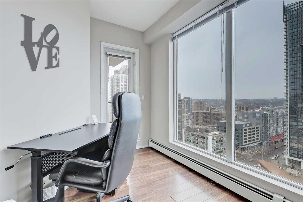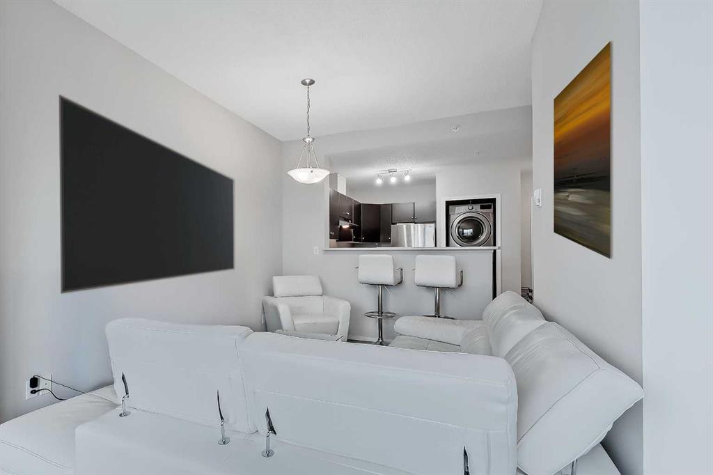 Perched on the 18th floor of Vantage Pointe in the heart of the Beltline, this thoughtfully designed 2-bed, 2-bath condo delivers an elevated lifestyle—literally! With a smart, zero-wasted-space layout and only one shared neighbour wall, it is an appealing option for buyers who want comfort, quiet, and convenience without compromise. From the moment you step inside, the unit feels bright and inviting. The tiled foyer leads to the kitchen, where you’ll find an updated stainless steel fridge and dishwasher, ample counter space, generous cabinetry, and a raised breakfast bar. The open-concept layout creates a natural flow into the living room, finished with laminate flooring and perfectly sized to adapt to a variety of lifestyles. Whether you prefer a combined living/dining setup or a living room with a dedicated home office or reading nook, the space easily accommodates it. A large west-facing window pours in natural light and frames wide-open skyline and mountain views, while the attached balcony provides that rare “open-air” feel so many condos lack—perfect for sunset unwinding or a quiet morning coffee. The primary bedroom is impressively spacious, complete with large windows and blackout blinds. A dedicated A/C unit keeps the room cool in the summer (and cools the whole unit), and the private 3-piece ensuite offers a glass stand-up shower. The secondary bedroom is equally versatile, ideal for overnight guests, a second office, or a hobby room. Right across the hall, the main 4-piece bathroom features a tiled tub/shower combo. Practical upgrades include an in-suite laundry closet with an updated stacked washer/dryer, secure underground heated parking (with a stall conveniently close to the elevator), and fob-controlled keyless entry and elevator access. The building itself supports an easy, connected lifestyle: two bike storage rooms, plentiful visitor parking, 24/7 concierge service, and a well-equipped gym (currently undergoing upgrades). Location is one of this condo’s strongest assets. Positioned directly across from the Midtown Co-op, day-to-day errands become effortless; you can even access the Co-op through the underground parkade. The Downtown West–Kerby CTrain Station is less than a 10-minute walk away. Plus, some of Calgary’s most vibrant destinations are right at your doorstep: 17th Avenue’s restaurants and nightlife, Stephen Avenue’s shops and cafés, the downtown core, the Bow River Pathway network, the Calgary Public Library, and countless fitness studios, markets, and pocket parks. This home offers the kind of lifestyle buyers appreciate but rarely find at this price point: views, convenience, comfort, and a building with a long-standing reputation for strong management and amenities. Schedule your private showing today!