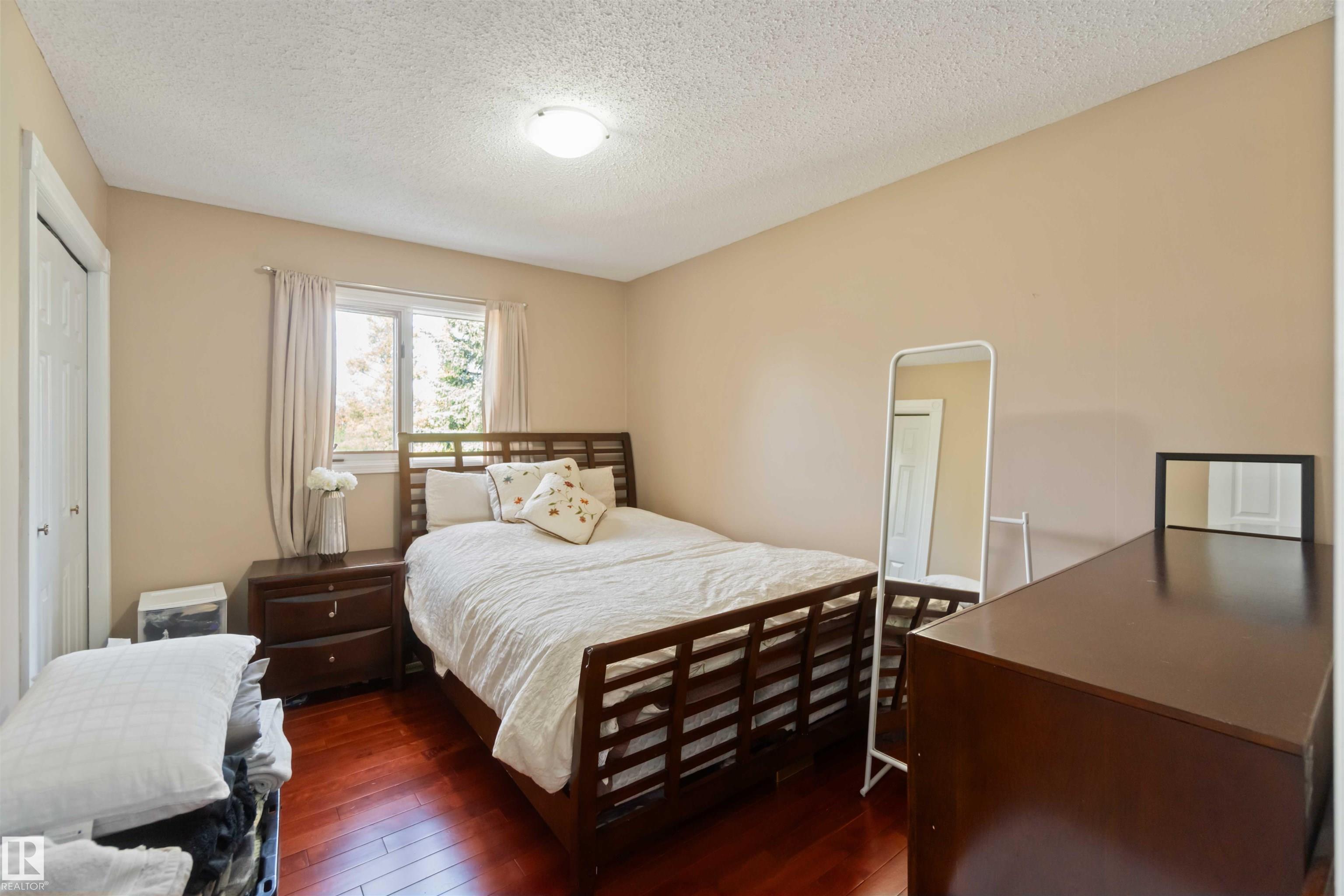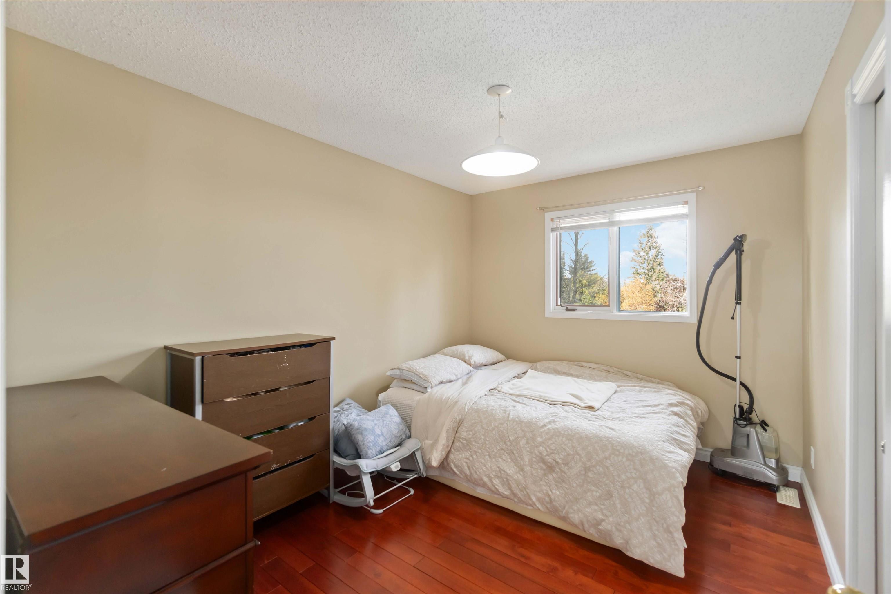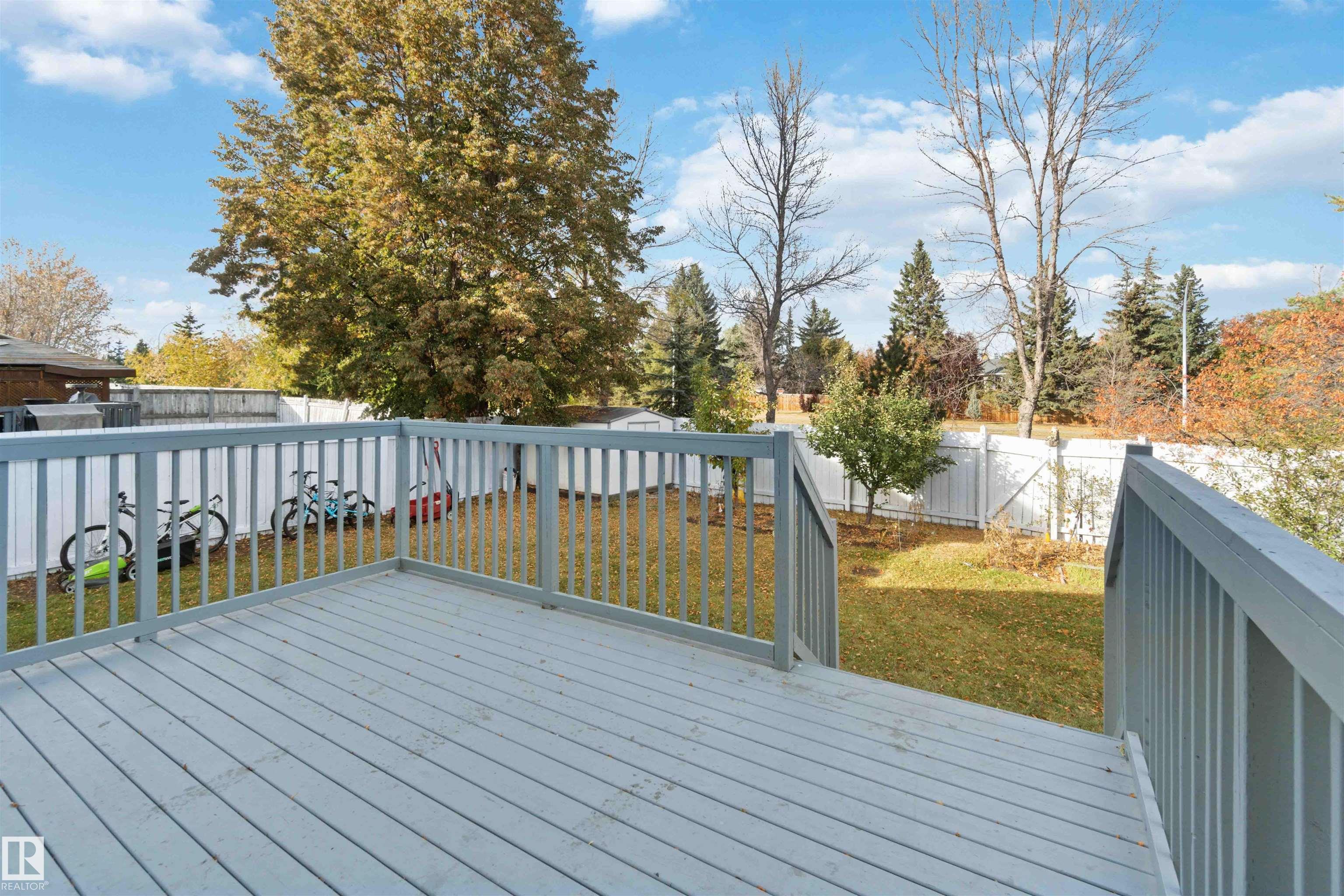 Air-conditioned 3 bedroom plus den with 4 bathrooms could be yours. This spacious home has room for the whole family and extended family, featuring a developed basement with a second kitchen. As you enter, you’ll be greeted by 22-foot vaulted ceilings, gleaming hardwood floors, and elegant moldings. The main floor includes laundry, a guest bath, living room, formal dining area, and a beautiful kitchen with granite counters and plenty of storage. There’s also a cozy family room with a wood-burning fireplace and patio doors leading to a huge backyard with a party-sized deck—perfect for gatherings and kids to play. Upstairs, the master suite offers a jacuzzi tub and separate shower in the luxurious ensuite, while the other two bedrooms share their own full bathroom. Recent updates include new shingles, a new furnace, and fresh paint throughout. Located close to schools, shopping (West Edmonton Mall), and major routes like the Anthony Henday, this bright, custom-built home in family-friendly community.