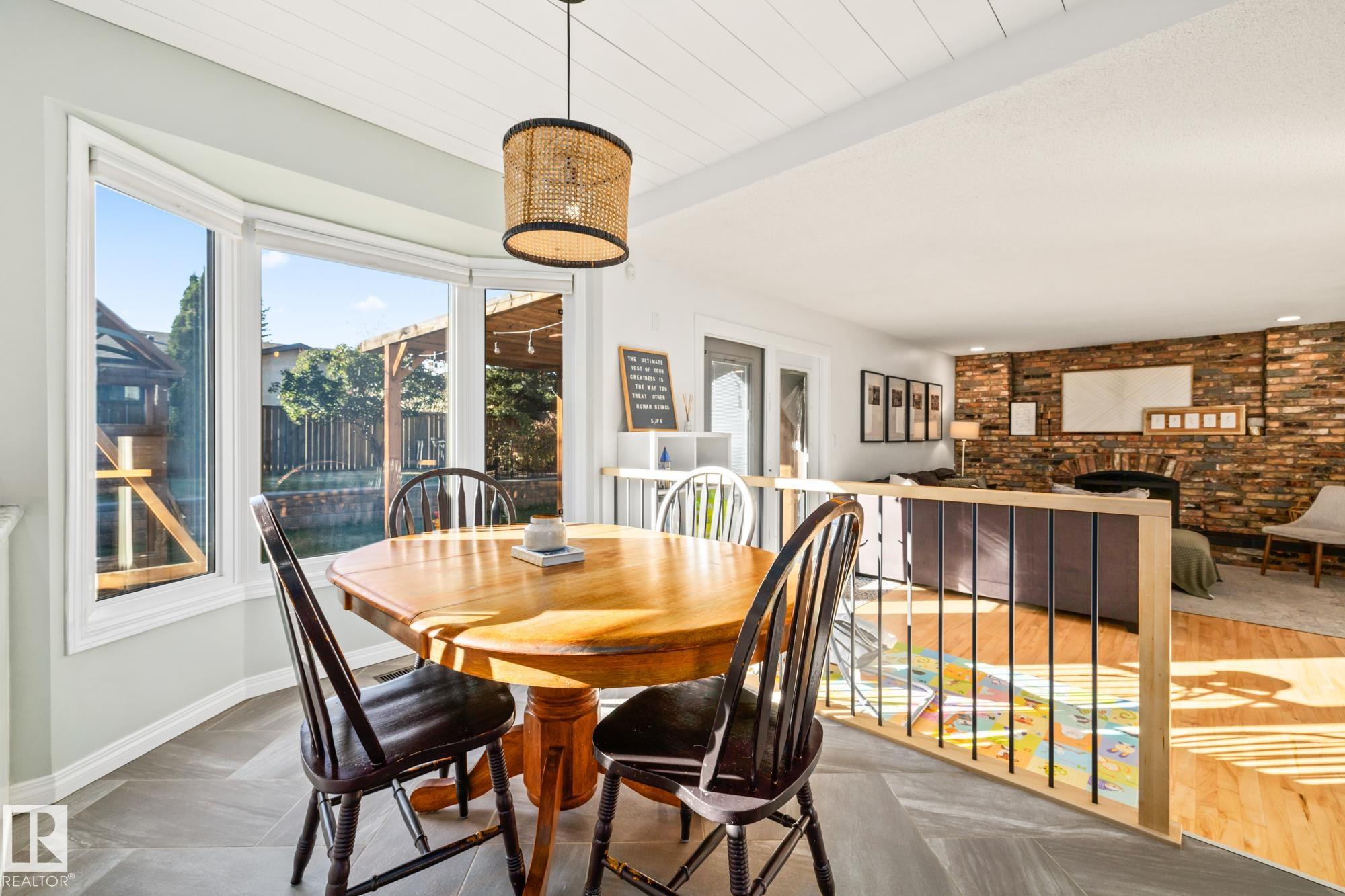 Beautifully renovated and perfectly located, this turnkey 2 storey in Ormsby Place sits in a quiet cul-de-sac across from Willowby Park. With 5 bedrooms and 3.5 baths, it’s the ideal home for families seeking space, style and a move-in ready property in west Edmonton. The main floor features sun-filled living and dining with curved bay window, board and batten detail and custom wall-length bookshelves, while the family room centers around a brick fireplace. The bright eat-in kitchen shines with white cabinetry, plank ceiling, recessed lighting, peninsula island, new appliances and walkout access to the yard. Upstairs offers a generous primary suite with private ensuite, 2 bedrooms and a family bath. A main floor bedroom and bath add flexibility, and the finished basement provides a 5th bedroom, bath, rec area & play rm. Outside enjoy a fenced yard with pergola, brick patio, garden beds and mature trees. Extensive updates include kitchen, baths, flooring, lighting, paint, railings, laundry and garage door.