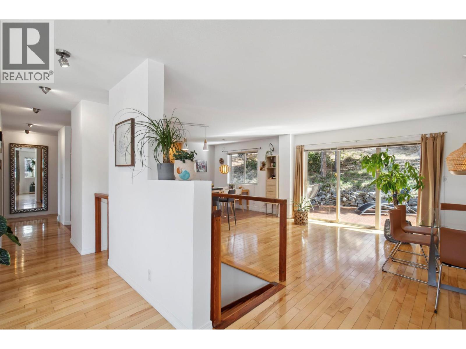 Located in the prestigious Magic Estates, this architecturally designed 3 bed, 3 bath and 3 bonus rooms home offers gorgeous views of Okanagan Lake and the mountains. Designed to maximize natural light, it features oversized windows bathing every room in daylight and offering stunning views from nearly every angle. The spacious foyer leads to Douglas fir stairs with glass railings, opening to the upper level (main level) which features a bright open-concept living-dining-kitchen-breakfast area. The living area boasts a cathedral ceiling, a gas stove on a stone feature wall with panoramic lake and mountain views. Front covered balcony is perfect for relaxation. The kitchen offers ample counters, a gas range and breakfast area. The dining opens to a back deck and tranquil low maintenance yard with mature trees. The main level features a primary bedroom with full ensuite, second bedroom, full bathroom plus hobby room. The lower level includes a bright office/studio with large windows, 3rd bedroom and 3rd full bathroom, laundry, a spacious gym that can double as a theater or flex area. Custom built with quality and longevity in mind, the home features a durable cement tile roof offering fireproofing, exceptional insulation for year-round comfort and energy efficiency. Solid hardwood and ceramic tile floors provide timeless elegance. This home reflects exceptional care and attention to detail, with easy access to Knox Mountain Park and bus stop to all local schools.