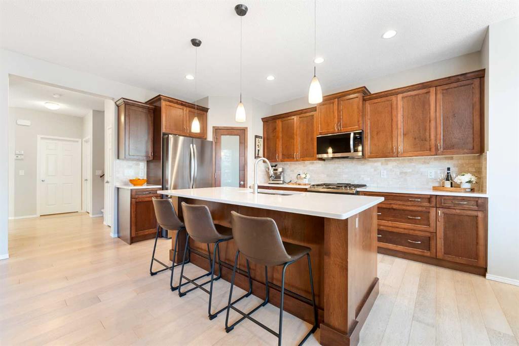 OPEN HOUSES will be on Sat. Feb 28th from 1-4 PM & Sun. Mar 1st from 1-4 PM!! WOW! Check out your new home in the heart of Auburn Bay and you will be just a few minute drive to the LAKE, there are also numerous schools, parks, playgrounds, walking paths and ponds close by as well as the Hospital, YMCA, off leash dog park, so many shops, restaurants, bars and shopping right at your doorstep! As you enter the home you are greeted by beautiful light hardwood flooring throughout the main floor, a good sized main floor office that is perfect for the stay at home professional! The main living area is amazing with a gorgeous kitchen as the focal point of the main floor and features stainless steel appliances, gas stove with a double oven, beautiful newer quartz countertops, subway tiled backsplash, garburator, corner pantry and ample cabinet and counter space! The adjacent dining area is so bright and sunny and has vaulted ceilings and can easily accommodate an 8 person table! The main floor is completed with a cozy living room with a gas fireplace, a half bath and a mudroom with the upgraded washer and dryer! Upstairs has an awesome bonus room that you can enjoy the summer sunsets from on the balcony off of the front of the house, as you make your way down the hall the primary suite is set up perfectly with separate sinks for convenience with the soaker tub in the middle as well as a separate shower, a make up area and a walk in closet! There is also another full bathroom for the kids and 2 more bedrooms upstairs :) The basement is unfinished and has a perfect set up for future development (bedroom, bathroom and rec room) The back yard is a private and serene oasis that is private, offers numerous trees, a gas fire table to enjoy and a beautiful deck! If that isn't enough you will also appreciate the newer carpet throughout, newer fridge and dishwasher, new sinks in the bathrooms, updated hot water tank and the location is amazing! Come and have a look at your NEW HOME!