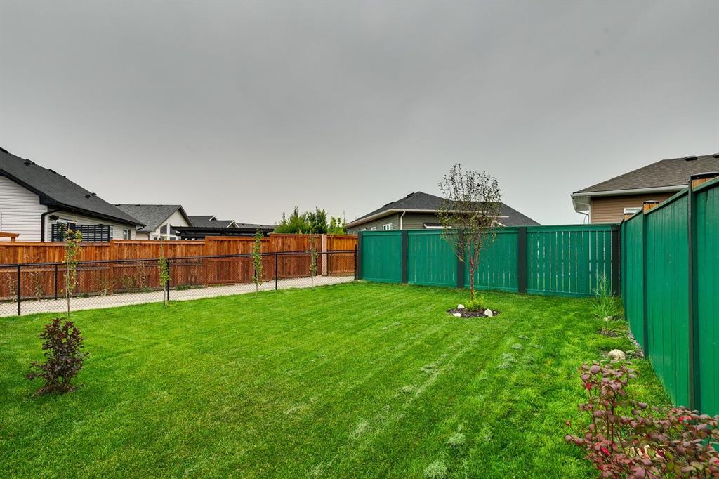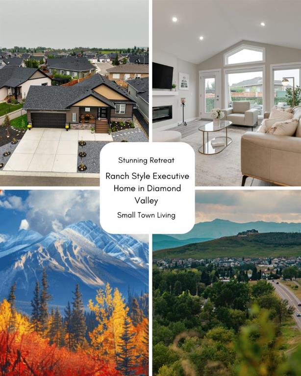 Executive Custom-Built Bungalow – Turnkey Luxury Just 30 Minutes from Calgary Discover turnkey perfection in the serene and sought-after community of Riverwood Estates. This less-than-one-year-old ranch-style bungalow is protected by full builder warranties and has been thoughtfully upgraded at every turn for comfort, style, and modern convenience. Its single-level design makes it ideal for retirees, snowbirds, or young families, offering effortless accessibility and a low-maintenance lifestyle without compromising on luxury. Step inside to an open-concept living area bathed in natural light from a wall of rear windows and accented by vaulted ceilings. Gorgeous LVP flooring flows seamlessly throughout, leading to a designer gourmet kitchen with full-height cabinetry, quartz countertops and backsplash, walk-in pantry, stainless steel appliances, a sleek chimney hood, and a stylish island—perfect for entertaining or everyday living. Luxury details abound, including built-in California closets, Hunter Douglas blinds, in-California shutters, dimmable lighting, energy-efficient triple-pane windows, upgraded vinyl siding, and a composite front porch. Both bathrooms are spa-inspired: the primary ensuite features a full-tile walk-in shower, while the second offers a full-tile tub/shower combination. The unfinished basement, roughed-in for plumbing, provides endless potential for a media room, home gym, or additional living space tailored to your lifestyle. Outside, enjoy morning coffee on the welcoming front porch or relax on the spacious backyard deck overlooking a newly landscaped, low-maintenance yard designed to flourish beautifully with minimal upkeep. This is a home built for entertaining, relaxing, and savoring the peaceful surroundings. Perfectly located just minutes from clinics, pharmacies, and Oilfields General Hospital, Diamond Valley offers direct access to Sheep River walking paths, local shops, restaurants, schools, and golf. Okotoks is 15 minutes away, Calgary just 30 minutes—the ultimate balance of small-town serenity and city convenience. This home seamlessly blends luxury, accessibility, and endless potential. A cinematic lifestyle video highlights its elegant design and tranquil setting—book your showing today and experience the best of Riverwood Estates living!