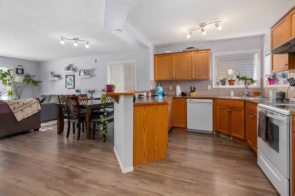 OPEN HOUSE SATURDAY FEB 28TH 1:30-3:30pm! Welcome to this charming home located in the highly sought-after, family-friendly community of Sagewood. Just steps from schools, parks, playgrounds, and scenic walking/biking paths, and only minutes from shopping, groceries, and restaurants, this location offers the perfect balance of convenience and community living. This well-maintained home features 3 bedrooms and 1.5 bathrooms, along with a large backyard, a two-tiered deck, and a double detached garage with alley access. The bright and spacious main floor offers an open-concept layout with large windows that flood the home with natural light, complemented by durable laminate flooring throughout. The kitchen is a true highlight — spacious and thoughtfully designed with ample counter space, generous cabinetry, and windows overlooking the backyard. Whether preparing everyday meals or entertaining guests, this kitchen is both functional and inviting. A convenient main floor powder room, complete with additional storage, adds practicality to the layout. Upstairs, you’ll find the primary bedroom featuring a massive walk-in closet, along with two additional bedrooms and a well-appointed main bathroom offering excellent space and storage. Step outside from the main floor onto the beautiful deck with railings, which flows down to the second tier and into the fully fenced backyard & double detached garage — perfect for soaking up the sun, entertaining, or enjoying quality time with family and friends. This is the perfect opportunity to enjoy comfort, space, and community all in one!