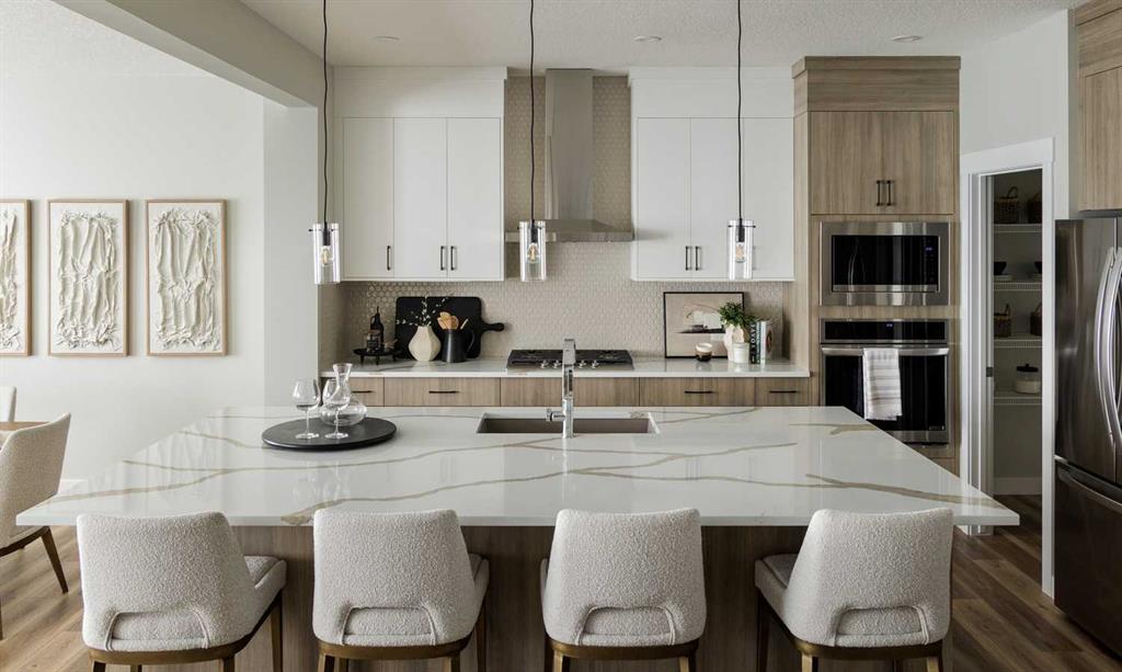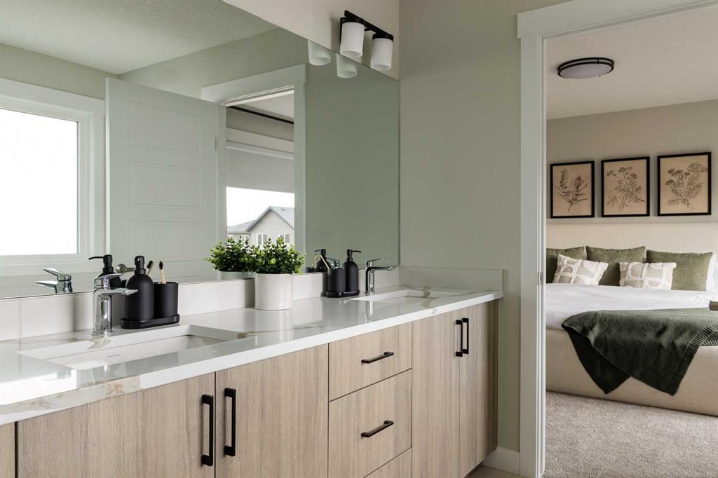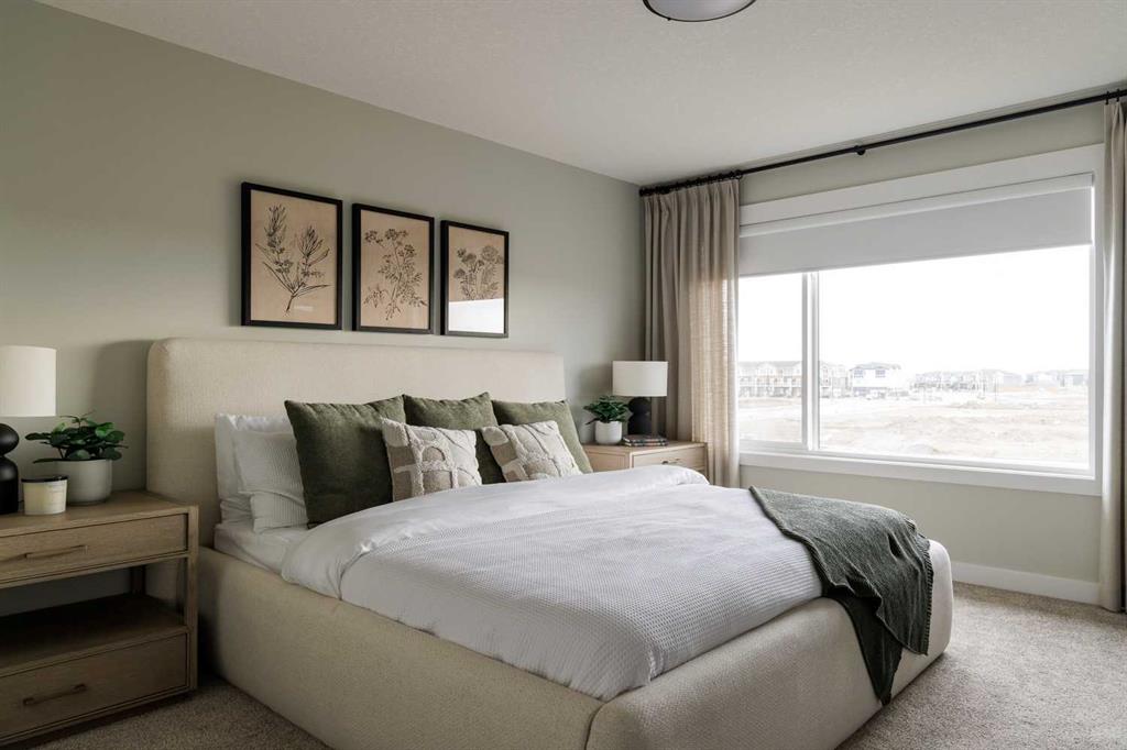 This quick-possession front-drive home offers a well-balanced layout with upgraded finishes and strong everyday functionality in Glacier Ridge. Featuring 2,284 sq.ft., 3 bedrooms, and 2.5 bathrooms, the main floor is finished with 9’ ceilings, luxury vinyl plank flooring, a gourmet kitchen with quartz countertops, stainless steel appliances including a gas cooktop and built-in wall oven, a flush eating bar, and a walk-in pantry. The dining area and great room are bright and open, highlighted by an electric fireplace, while a dedicated main floor office adds practical work-from-home space. Upstairs includes a spacious bonus room, a large primary bedroom with walk-in closet and ensuite featuring tiled shower walls, two additional bedrooms each with walk-in closets, a generous laundry room, and upper-level railing. Added highlights include iron spindle railing on both levels, extra side and basement windows, permanent soffit lighting, a side entry, gas line for BBQ, an 8’ front entry door with transom, and a 9’ basement foundation offering future development potential. Located in Glacier Ridge, a growing northwest Calgary community with parks, pathways, and convenient access to major routes, this home includes the confidence of a full builder warranty. Book your showing today. (Interior photos are of a showhome with similar layout and may not fully represent the property for sale)
