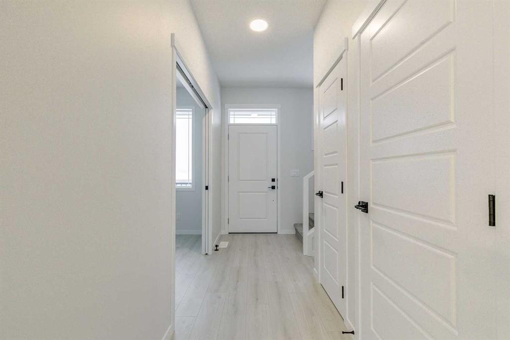 Welcome to this stylish Morrison Homes spec property located in the beautiful community of Sirocco in Pine Creek, SW Calgary. The main floor offers a functional layout with an enclosed den perfect for a home office, a bright living room, luxury vinyl plank flooring, pot lights, a walk-in pantry, and a well-appointed kitchen featuring quartz countertops throughout and a modern island ideal for meal prep and gathering. A convenient 2-piece bathroom completes the main level. Upstairs, a spacious bonus room provides an additional living area separating the three bedrooms. The upper level also includes a dedicated laundry area for added convenience. The primary bedroom features its own 3-piece ensuite with a standalone tiled walk-in shower, while the remaining two bedrooms are served by a comfortable 4-piece bathroom. The basement is currently undeveloped, offering a blank canvas for your own customization. This home also includes a separate entrance, basement suite rough-ins offering excellent potential for a future suite development (A secondary suite would be subject to approval and permitting by the city/municipality). With thoughtful design, quality finishing, and room to grow, this property delivers exceptional value in one of Calgary’s rapidly developing SW communities.