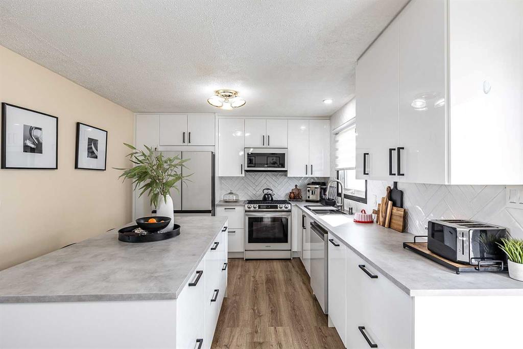 If you’ve been looking for a home that feels updated, functional, and move-in ready, this corner-lot bi-level in NECH delivers. With 4 bedrooms, 2 bathrooms, and thoughtful upgrades throughout, this home is sure to impress. Step inside and you’re immediately greeted by a fresh, contemporary feel. Updated flooring and paint create a bright, cohesive space, while a striking vertical wood feature wall that adds warmth and architectural interest. The main floor offers an open-concept living and dining area, highlighted by custom built-in shelving with accent lighting and a sleek electric fireplace—creating a space that feels both stylish and inviting. The fully renovated kitchen is a standout, featuring crisp white cabinetry, newer appliances, and a large island with seating. Down the hall, the bedrooms are finished with timeless wainscotting details, and the updated 4 pc bathroom completes the main level. The lower level offers excellent additional living space with a spacious rec room, 2 more bedrooms, a 3 pc bathroom, and a well-designed laundry room with ample cabinetry and counter space. A separate back entrance adds convenience and flexibility. Outside, the yard is set up for both relaxation and entertaining, with a cozy deck, expansive patio area ideal for summer evenings and weekend BBQs. Underground sprinklers, a newer vinyl fence, and storage shed add to the functionality. The oversized heated single garage provides plenty of room for vehicles, storage, or hobbies, with additional space for trailer or RV parking. Located on a quiet street in a great neighbourhood, this home is just a short walk to parks, schools, the Big Marble Go Centre, and shopping amenities. All that’s left to do is move in and start enjoying everything this home has to offer.