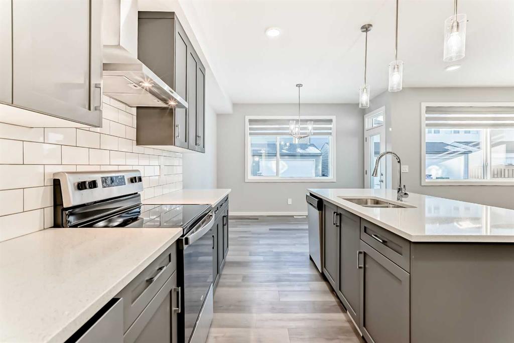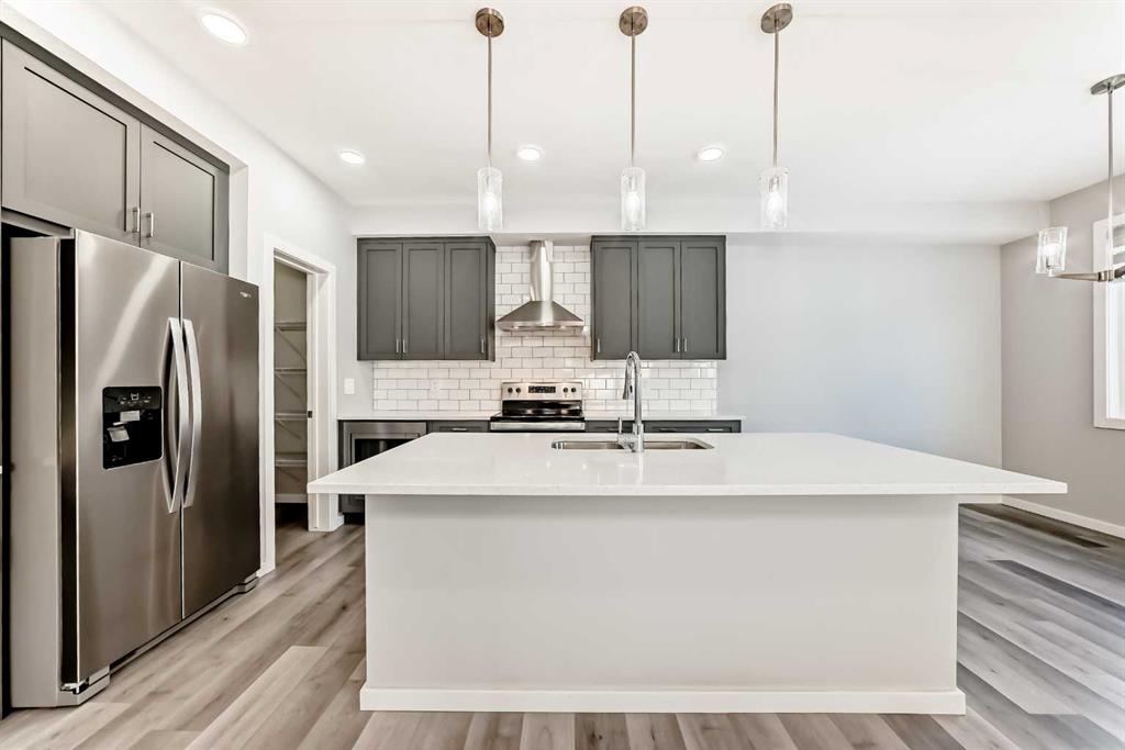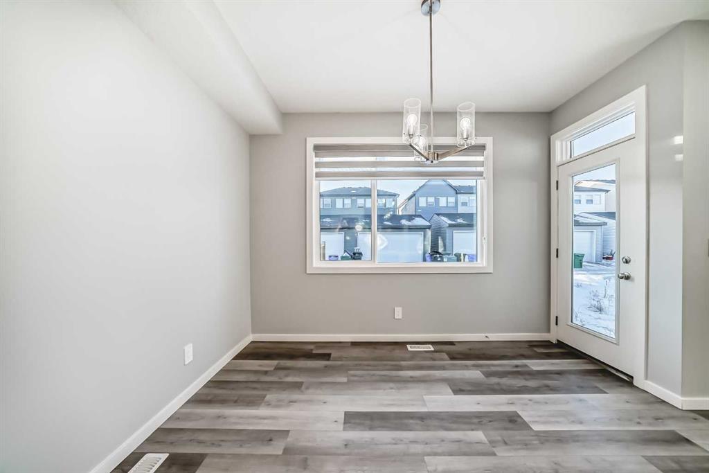 SHOWS 10/10 Welcome to this beautifully finished detached home in the growing community of Rangeview, offering modern design, functional living spaces, and the advantage of immediate possession. Whether you’re a growing family, an investor, or a buyer eager to move right in, this vacant home has AMAZING LOCATION and EXCELLENT DESIGN ready to welcome its next owners. From the street, the home showcases a striking contemporary façade with clean lines, modern siding, and tasteful architectural detailing that blends seamlessly with the neighborhood’s fresh, urban feel. The double attached garage and welcoming front entry complete the polished curb appeal. Step inside and you’re greeted by a bright and inviting entrance that sets the tone for the rest of the home. Just off the entry is a mudroom with direct access to the double attached garage—perfect for keeping everyday life organized. The main floor flows effortlessly into a spacious living area ideal for relaxing or entertaining, followed by a well-defined dining space that connects beautifully to the heart of the home. The kitchen is a standout, featuring a huge central island with ample seating, modern cabinetry and finishes, and a walk-through pantry that adds both convenience and storage. A powder room completes the main level, thoughtfully placed for guests. Upstairs, you’ll find three generously sized bedrooms, each designed with comfort in mind. The primary retreat offers a spacious layout, a walk-in closet, and a private ensuite bathroom, creating a perfect place to unwind. The two additional bedrooms also feature their own walk-in closets, a rare and highly desirable touch. This level is completed by a 4-piece main bathroom, a convenient laundry room, and a bonus room—ideal as a family lounge, home office, or play area. The basement remains unfinished, providing a blank canvas for the new owners to customize—whether that’s additional bedrooms, a home gym, or an entertainment space. Step outside to discover a massive backyard with back lane access, offering incredible flexibility. There’s AMPLE ROOM TO PARK AN RV at the back (pie shape lot with back lane), add future landscaping, or create your dream outdoor living space—something truly hard to find. Located in Rangeview, Calgary’s first garden-to-table inspired community, residents enjoy walking paths, parks, future schools, and a strong sense of neighborhood connection. With easy access to major roadways, nearby amenities, and continued community growth, this is a location that offers both lifestyle and long-term value. Vacant, move-in ready, and available for immediate possession—this is your opportunity to secure a modern home with space to grow in one of Calgary’s most exciting new communities.