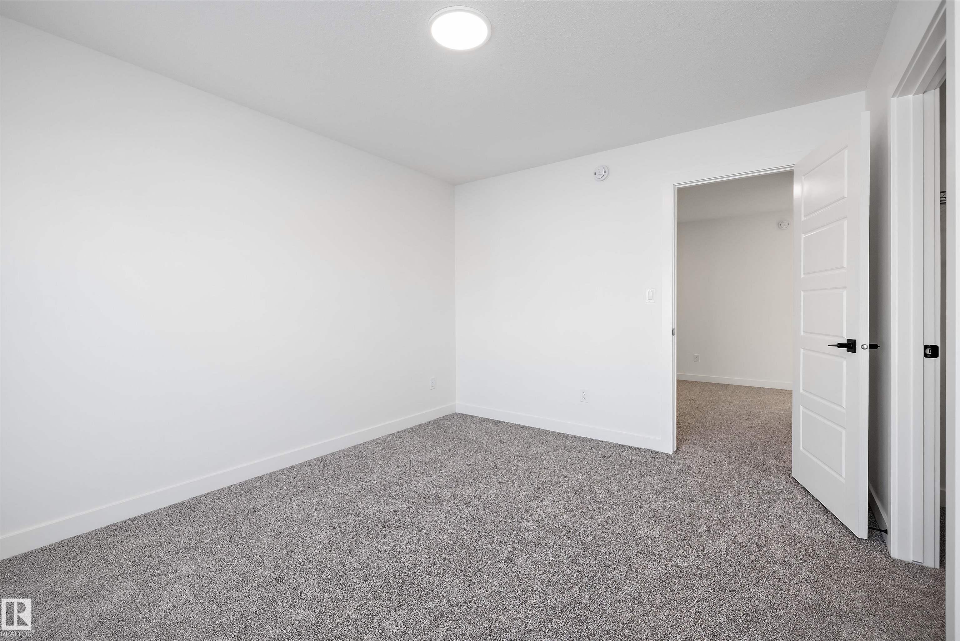 This home offers a functional layout with bright, open living spaces. The main floor features luxury vinyl plank flooring, a welcoming foyer with a coat closet, and a cozy great room filled with natural light from a large front window. The kitchen includes quartz countertops, an island with an eating ledge, a Silgranit undermount sink, pendant lighting, an over-the-range microwave, soft-close cabinets with upgraded profiles, and a spacious pantry. At the rear, a sunny dining nook overlooks the backyard and provides access through a garden door. A main-floor bedroom and full 3-piece bath with a stand-up shower add flexibility. Upstairs, the primary suite features a walk-in closet and a 3-piece ensuite, along with two additional bedrooms, a full bath, and a convenient laundry closet. A rear parking pad is included, with the option to add a detached double garage. Additional features include 9-ft ceilings, a separate side entrance, brushed nickel fixtures, and basement rough-ins.