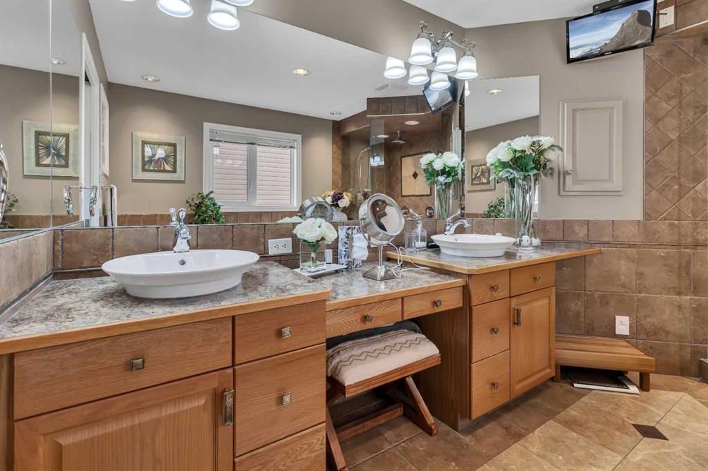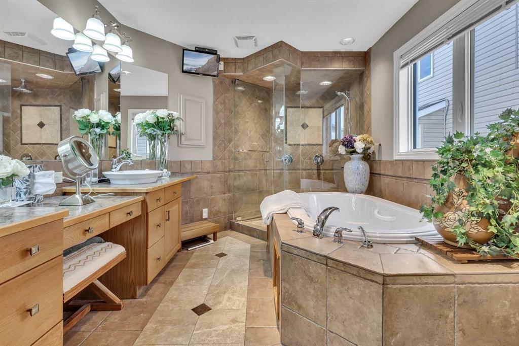 Stunning original owner walk out bungalow. Loaded with some fantastic, amazing upgrades which include: newer triple pane, low E windows main level, newer front door & over head garage door, newer LVP flooring main, 10" ceilings main, kitchen with refinished cabinets, granite, newer back splash, top of the line stainless steel appliances, newer master ensuite offering heated floors, soaker tub with air jets & self cleaning, duel shower head shower, gas fireplace, dry bar with bar fridge, newer furnace & hot water tank, heated, insulated & drywalled garage with epoxy floors, built in cabinets & shoe rack, generator panel installed next to main panel with the inlet in garage incase power ever goes out, all poly B removed, Pex installed, emergency back up lighting in garage, utility room & stairs, air conditioning, interior/exterior camera system, full length deck with a portion covered, large concrete patio, custom garden boxes, over 2500 sq ft of developed living space, custom brick front exterior & so much more. The bright open main floor features a living & dining room combo, kitchen with island & access to the NW facing deck, 4pc bath & 2 good size bedrooms. The primary bedroom offers a walk through closet & full spa like ensuite. The lower walkout level features a family room with built in cabinets & gas fireplace, games area with dry bar, 3rd bedroom that also has a 3pc ensuite with heated floors, there is also a large laundry room with lots of storage space. Located on a very quiet close to bus, shopping, green spaces, Stoney & Deerfoot & all other amenities. Click on link to view 3D walk through.