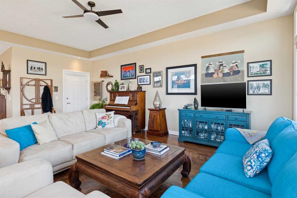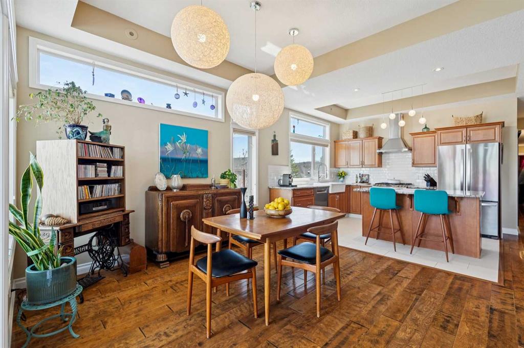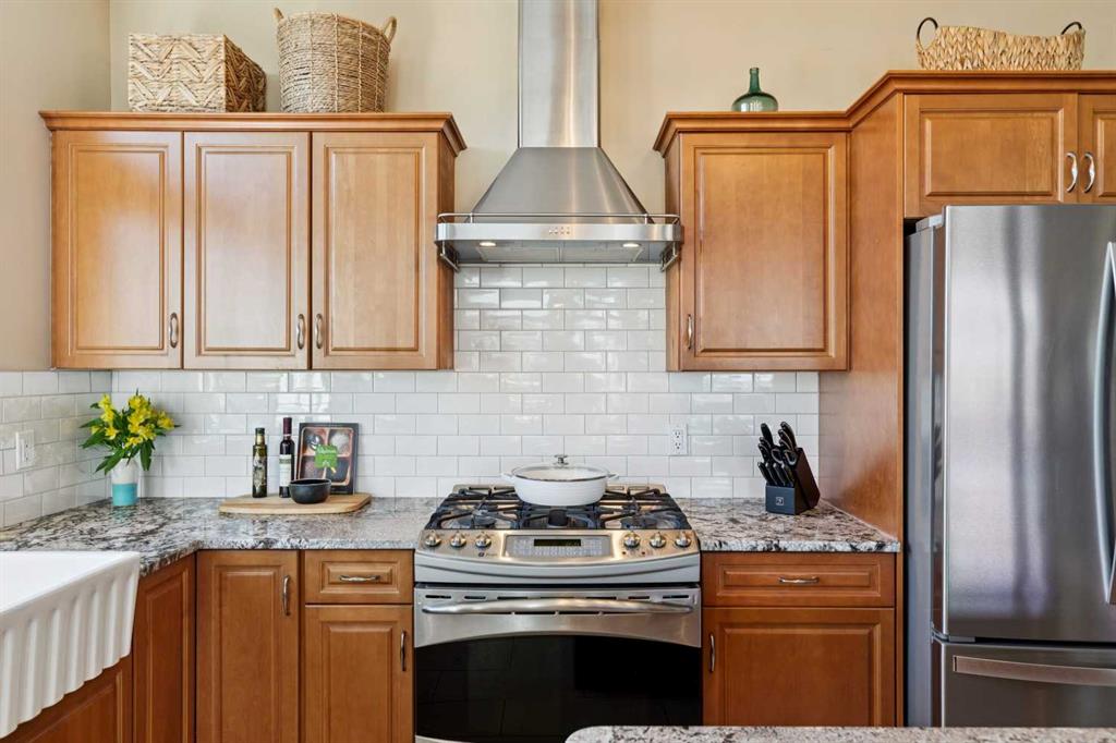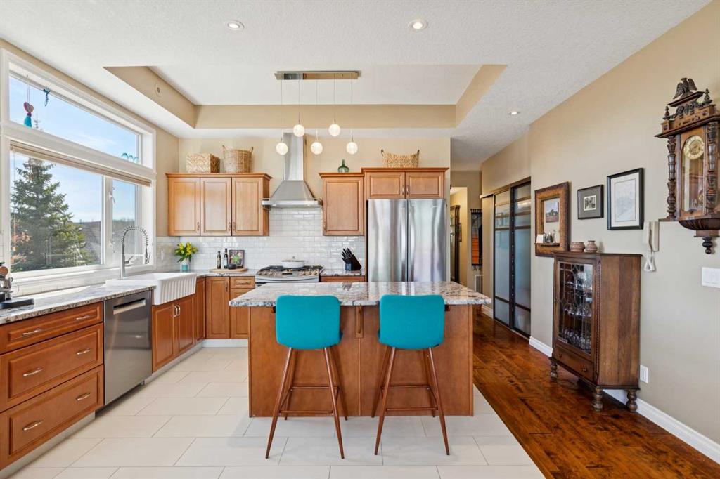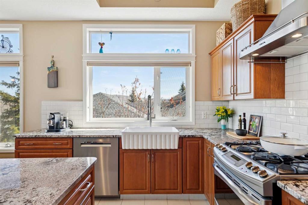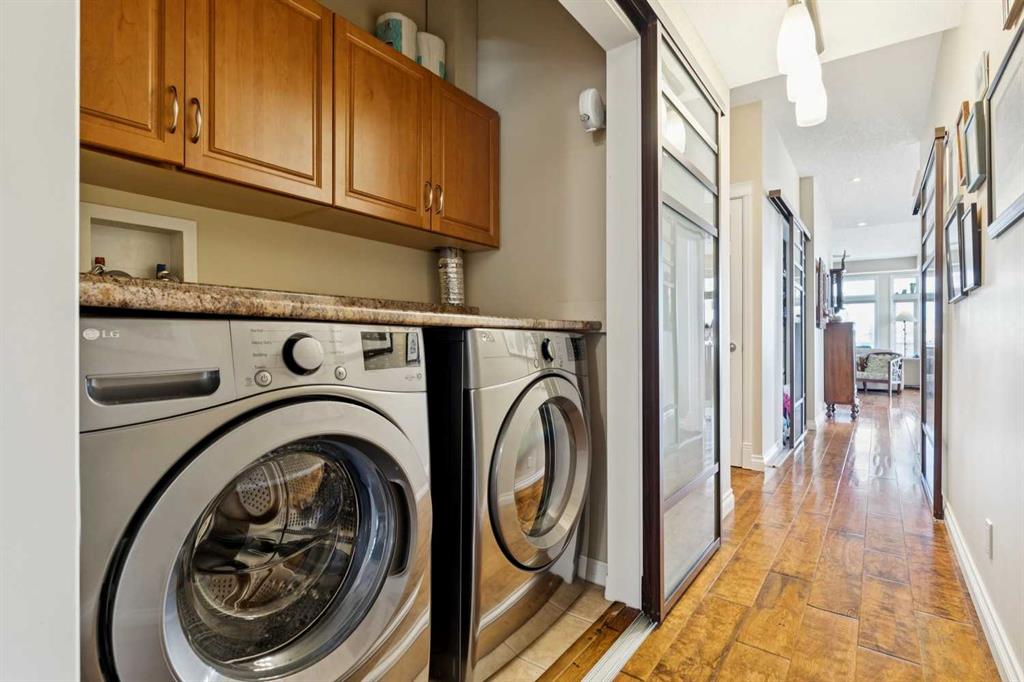 WOW! Prepare to be impressed by this stunning, ultra-stylish, recently updated TOP FLOOR condo offering breathtaking, UNOBSTRUCTED VIEWS of the Bow River, River valley and ROCKY MOUNTAINS! This exceptional home delivers a truly unique lifestyle, featuring a PRIVATE ELEVATOR with direct access to your unit and a HEATED DOUBLE GARAGE with additional storage. Nestled along the Bow River and Jumping Pound Creek, this tranquil setting is surrounded by scenic pathways, creating the perfect backdrop for relaxing, entertaining, and enjoying the outdoors year-round. Inside, the home is flooded with natural light, showcasing soaring 10-foot ceilings and beautiful engineered flooring throughout. The open-concept main living area is both elegant and functional, highlighted by a modern kitchen complete with a gas stove, stainless steel appliances, and granite countertops—ideal for hosting or everyday living. To the front of the unit, you’ll find two spacious bedrooms, including a large primary retreat with a luxurious 4-piece ensuite featuring a soaker tub. A second 4-piece bathroom also offers granite countertops. A bright and spacious office provides an ideal work-from-home space. This home is loaded with premium features, including AIR CONDITIONING and convenient ATTIC STORAGE for seasonal items. Recent upgrades elevate both comfort and style, including a STUNNING 3 SEASON SUNROOM ($34,000 ), new sliding doors and designer lighting throughout the entire home. Additional updates include LG washer and dryer (Nov 2023), Whirlpool refrigerator (2022), and Bosch dishwasher (2025). With unparalleled views, upscale finishes, and a serene natural setting, this is a rare opportunity to enjoy refined riverside living at its finest. Book your showing today!!