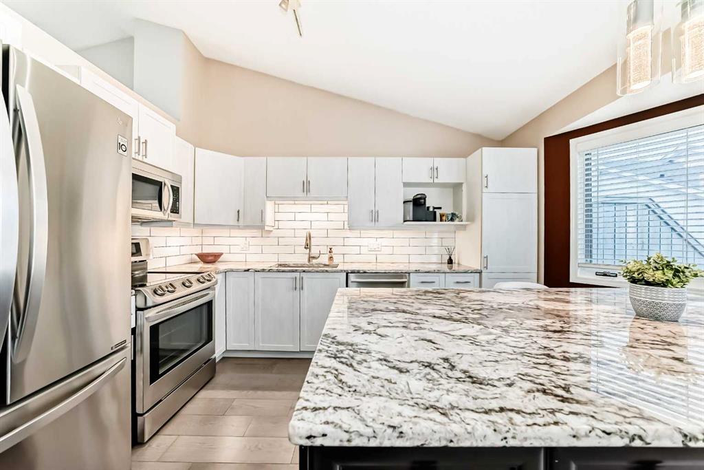 ***PRICE REDUCTION $10,000*** It’s time to BREAK IT TO THE KIDS (and grandkids)--YOU’RE ‘DOWNSIZING!’, BUT… NOT… to some BORING SENIOR HOME (MILES AWAY) with SING-A-LONGS, Parcheesi and Bridge mixture…NO!– YOU’RE TOO YOUNG FOR THAT!-- You’re moving to ‘THE CLASSICS OF LAKE SUNDANCE,’ just down the street, where you can keep your INDEPENDENCE AND YOUR LAKE PRIVILEGES! This BRIGHT UPDATED, 3 Bdrm (2+1), 2 full bath, 1535 ft2 bare land condo has a SUPERIOR, INNER COURTYARD LOCATION–backing SUNNY SOUTH with a 29' (2 tiered) deck!-- Buyers will love the RENOVATED, WHITE ISLAND KITCHEN with ‘Black Forest’ granite countertops, newer stainless appliances (flat stove), European Bar Pulls, ingenious buffet counter, undermount & pendant lighting and extended seating for 4 (perfect for HAPPY HOUR). Vaulted ceilings, soft designer colors and wide plank flooring throughout the main floor. Open Dining/Living Room combinations with Electric Blinds. Spacious primary bedroom has access to private, upper tier sun deck. SPA INSPIRED 3pc has glass shower stall, RAIN shower head w/detachable wand, pebble tile, seating bench & granite countertops. Fully finished basement with vinyl flooring, a cozy gas fireplace, additional living space, and flexibility for guests/home office/media room. 4 pc bath down with SxS laundry area. Put the new E-BIKES (for Fish creek Park), golf clubs (for Blue Devil) and the stand up paddleboard (for the LAKE) in the OVERSIZED ATTACHED GARAGE with work bench. This home has AIR CONDITIONING! Mature, stable condo board with healthy reserve fund -- Come to LAKE Sundance (AFTER PICKLEBALL) and visit our OPEN HOUSE MAY 2ND, 11AM-1PM.