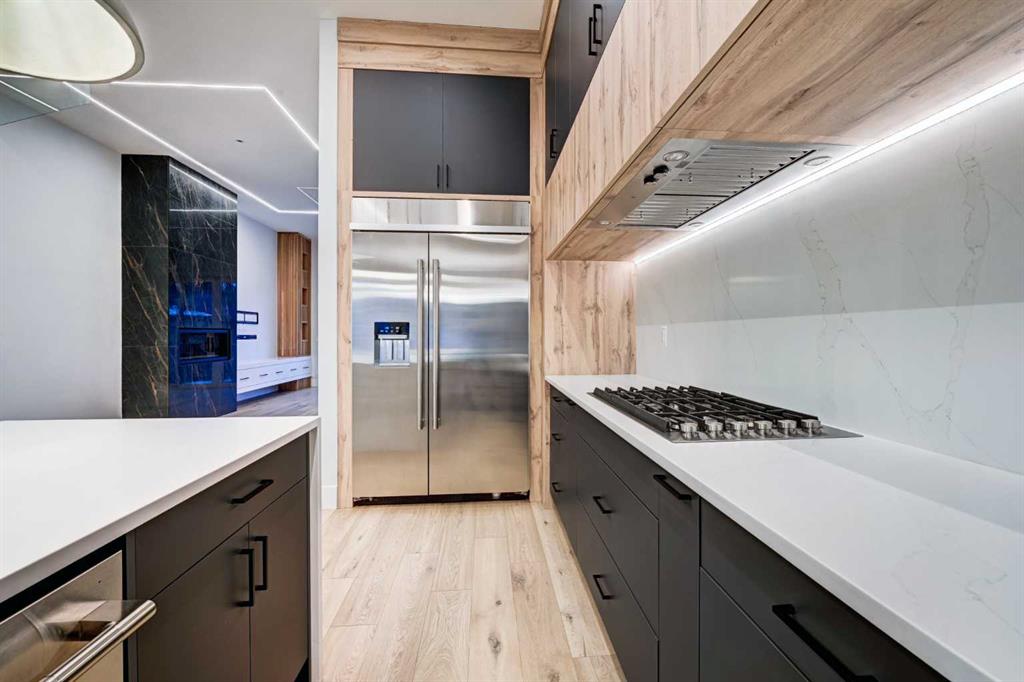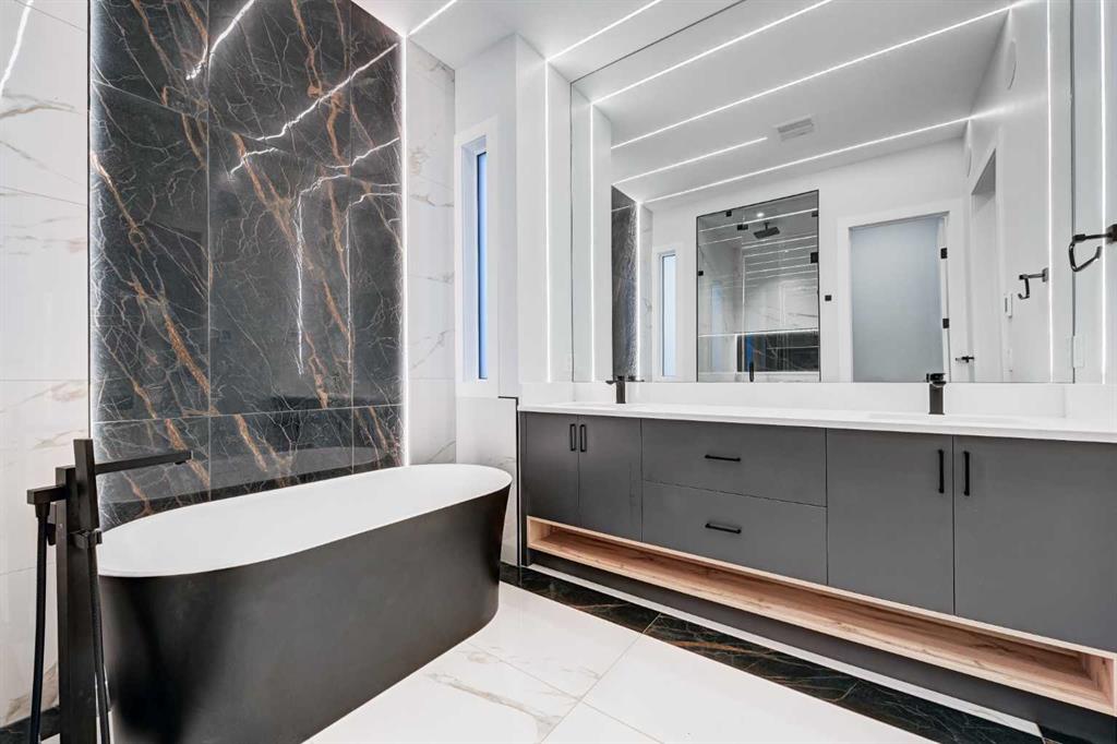 Set in one of Upper Mount Royal’s most prestigious pockets, this newly built residence delivers a refined blend of architectural elegance and modern design across more than 3,000 sq ft of meticulously crafted living space. With 3+1 bedrooms and a thoughtfully curated layout, this home captures the essence of upscale inner-city living while embracing the timeless character of the neighbourhood. A striking brick façade creates a lasting first impression, while the west-facing outdoor space invites warm afternoon light and effortless entertaining. Inside, the main level is defined by soaring 11-foot ceilings, wide-plank hardwood flooring, and an abundance of natural light that enhances every detail. A fully integrated smart home system elevates daily living with automated power blinds and customizable lighting, while upgraded designer light fixtures add an extra layer of sophistication throughout. The open-concept design seamlessly connects each space, complemented by a well-appointed mudroom and elegant powder room. At the heart of the home, the kitchen is designed to impress—featuring a massive waterfall quartz island, sleek custom cabinetry, and a high-end gas range that will appeal to both everyday living and elevated entertaining. The adjoining living room offers a stunning focal point with its tiled fireplace and custom-built media centre, while large sliding glass doors create a seamless transition to the backyard. A statement floating staircase leads to the upper level, where 10-foot ceilings continue the sense of openness. Here, you’ll find three generously sized bedrooms, a beautifully finished 4-piece bathroom, and a fully equipped laundry room with sink and ample storage. The primary suite is a true retreat, offering a spacious walk-in closet and a spa-inspired 5-piece ensuite complete with a freestanding soaker tub, oversized glass shower, and dual vanity. The fully developed lower level expands the home’s versatility with 9-foot ceilings and the option for in-floor heating. Designed for both relaxation and recreation, it features a large family room with a wet bar—perfect for movie nights or hosting guests—along with a dedicated exercise space, a fourth bedroom, and an additional 4-piece bathroom. Additional highlights include air conditioning, a rear deck with a BBQ gas line, and a heated double detached garage—ideal for Calgary’s winter months—ensuring comfort and convenience year-round. Located just moments from the vibrant energy of 17th Avenue SW, as well as top-rated schools, parks, and transit, this home offers an exceptional lifestyle with quick access to the downtown core via 14th Street SW. A rare opportunity to own a brand-new luxury home in one of Calgary’s most iconic communities—where timeless location meets contemporary living.