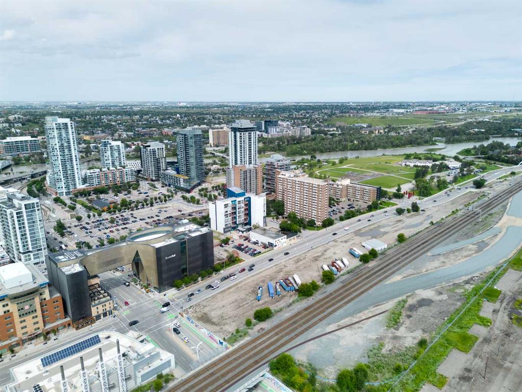 Experience elevated urban living in The Guardian South Tower. Perched on the 19th floor, this stunning single-level condo captures sweeping views of downtown Calgary and the Bow River through expansive FLOOR-TO-CEILING WINDOWS and from your BALCONY. This bright and modern one-bedroom, one-bathroom home is thoughtfully designed with sleek flooring and an abundance of natural light throughout. The contemporary kitchen features integrated cabinetry that seamlessly conceals the refrigerator and dishwasher, an INDUCTION COOKTOP, and a BUILT-IN MICROWAVE. The OPEN-CONCEPT layout flows effortlessly into the living area—ideal for both relaxing evenings and entertaining guests. The spacious bedroom is filled with natural light and showcases incredible views, along with a BUILT-IN CLOSET SYSTEM complete with drawers, eliminating the need for additional furniture. A well-appointed four-piece bathroom is conveniently located just across the hall. In-suite laundry with a stacked washer and dryer adds everyday ease. Residents enjoy 24-hour front door security, secure floor access, a titled underground parking stall, and a separate assigned storage unit. The Guardian offers exceptional amenities, including a FULLY EQUIPPED FITNESS CENTRE with SHOWERS, a ROOFTOP TERRACE with BBQs, a stylish RESIDENTS’ LOUNGE with kitchen, a GAMES AREA, and flexible spaces for relaxing or working. There’s even a dedicated WORKSHOP for CRAFTS or woodworking projects. Located in the heart of Calgary’s vibrant Beltline, you’re just steps from the Stampede grounds, LRT stations, and an array of downtown shopping, dining, and entertainment. This is an outstanding opportunity to own a sophisticated condo in a secure, amenity-rich building in one of the city’s most dynamic neighbourhoods.