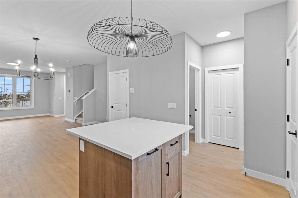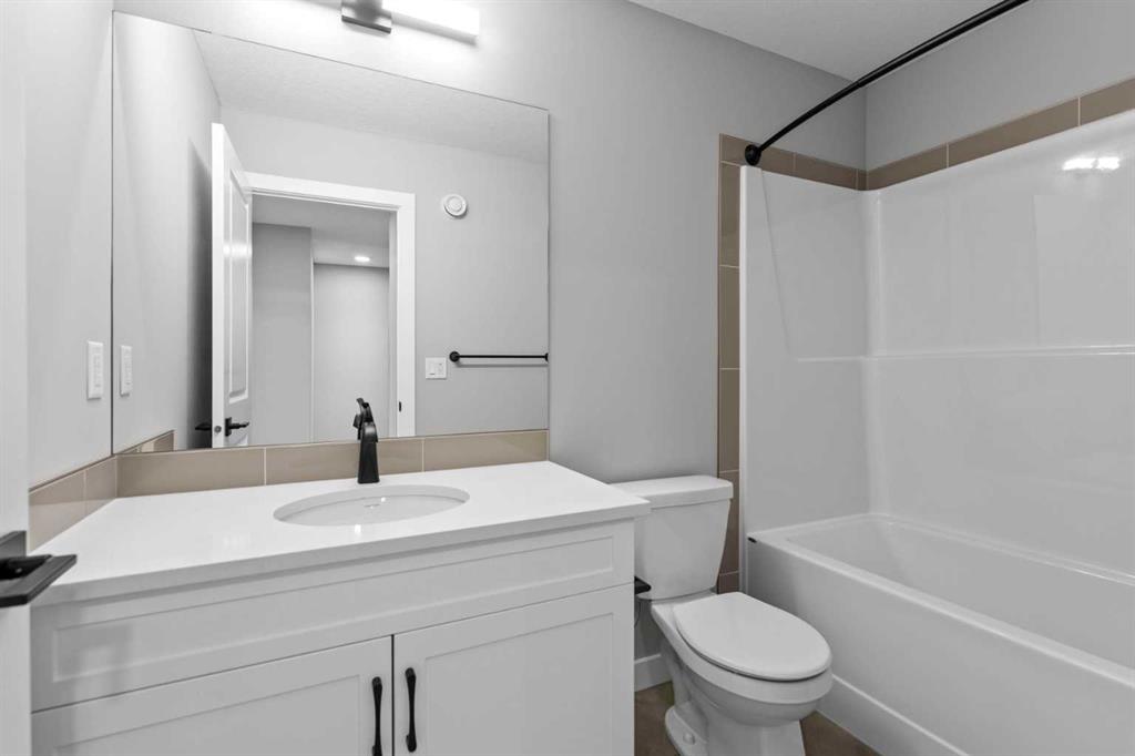 IMMEDIATE POSSESSION | 1,569 SQ.FT. | 3-BED | 2.5-BATH | SEPARATE SIDE ENTRANCE | 9' BASEMENT | UPGRADED KITCHEN | FRONT LANDSCAPING | This upgraded NEW HOME by Crystal Creek Homes offers an OPEN MAIN FLOOR with 9-foot ceilings and a stunning rear kitchen designed for everyday living and entertaining. Full-height cabinets, quartz countertops, a GAS RANGE, and a large island provide plenty of space for cooking and storage. The great room, complete with an electric FIREPLACE, feels bright and welcoming. Upstairs are three bedrooms, a main bath, and an extra LARGE LAUNDRY ROOM. The primary bedroom includes a modern ensuite with thoughtful finishes. The 9' BASEMENT and separate SIDE ENTRANCE allow for future legal suite potential (subject to City approval and permitting). Set on a quiet street near a future school and soccer field, this home features durable HARDIE BOARD SIDING and quick access to Stoney Trail, East Hills shopping, and downtown Calgary. Book your showing today!