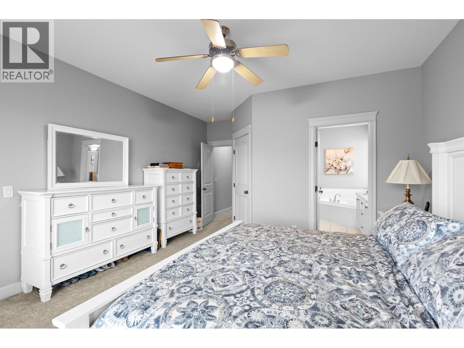 Incredible views set the tone for this thoughtfully designed walk-out rancher, offering sweeping mountain, city, and lake views from its quiet cul-de-sac setting in the sought-after neighbourhood of Shannon Lake. Large windows throughout the main level fill the home with natural light and beautifully frame the surrounding scenery. The open main floor features high ceilings and a refined layout that includes a generous den, a well-appointed kitchen with ample cabinetry, great counter space, and an inviting eating nook. The kitchen flows seamlessly into the living area, where high ceilings and a cozy gas fireplace create a warm and comfortable space for everyday living and entertaining. Also on the main level are a laundry room, access to the double garage, a full bathroom, a well-sized bedroom, and the primary suite. The primary bedroom offers direct access to the covered deck, a walk-in closet, and a five-piece ensuite. The walk-out lower level continues the home’s thoughtful design with two additional large bedrooms, a full bathroom, and a media room, along with direct access to the covered patio and yard. Outdoors, enjoy both covered and open patios and one of the largest yards in the Highlands development. Fully landscaped, irrigated, and fenced, the yard offers exceptional space, privacy, and room to enjoy the Okanagan outdoors. This home blends elevated comfort, generous outdoor space, and remarkable views in a location well-suited to the Okanagan lifestyle.