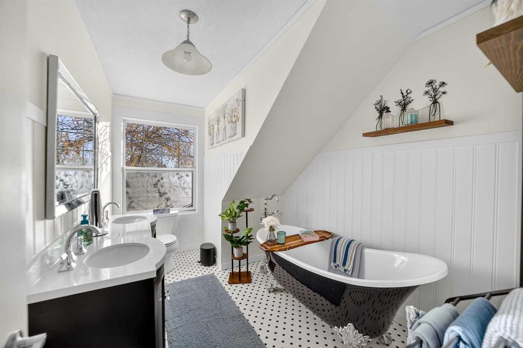 Exchange city grind for piece of mind in this beautifully renovated character home in the Historic Town of Didsbury perfectly blends timeless charm with modern luxury. Thoughtfully updated throughout, it retains the elegance of its original details while offering all the comfort and style today’s buyer expects. Step inside through the welcoming front entry with custom built-in coat hooks and bench. You’ll immediately be drawn to the expansive living and dining rooms, highlighted by stained glass windows, rich crown mouldings, and a warm, inviting atmosphere. The custom kitchen is a chef’s delight, featuring a massive island ideal for cooking, entertaining, or family gatherings. A large rear mudroom/sunroom and a designer powder room with hidden laundry complete the main level. Upstairs, the home divides into two distinct wings. The owner’s suite is a private retreat with a cozy sitting area, an impressive walk-in closet/dressing room, and a spa-inspired ensuite with double vanity, oversized shower, and heated floors. The second wing offers three spacious bedrooms and a stunning third bathroom, complete with double vanity, heated floors, and a charming clawfoot tub with handheld shower. Outside, enjoy a massive, treed yard offering privacy and space, along with a sunny south-facing deck—perfect for outdoor living. An oversized, heated double-attached garage adds convenience and functionality. This one-of-a-kind property combines historic character, thoughtful renovations, and modern amenities in a way that truly takes your breath away. Don’t miss your chance to own a piece of Didsbury history—book your showing today!