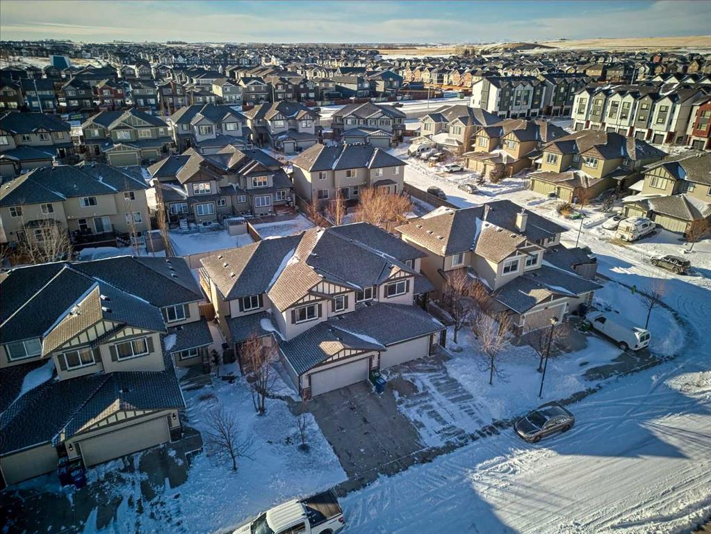 Located in the highly sought-after community of Bayside, this beautifully maintained two-storey home with a double attached garage is sure to impress. The main level showcases hardwood flooring throughout and features a private home office thoughtfully tucked away from the main living areas. A hallway leads to the bright and open living room, complete with a cozy fireplace and a spacious dining area filled with natural light. These spaces flow seamlessly into the stunning kitchen, offering an abundance of white cabinetry, granite countertops with a breakfast bar and a convenient walk-through pantry that connects to the main floor laundry and mudroom with direct access to the oversized double attached garage. A two-piece powder room completes this level. Upstairs, you’ll find a generous bonus room—perfect for family movie nights or a kids’ play area—along with three bedrooms and two full bathrooms. The spacious primary retreat features a four-piece ensuite with a soaker tub, separate shower and walk-in closet. The large unfinished basement is ready for your future development and personal design ideas. Step outside to enjoy the fully fenced and landscaped south-facing backyard, complete with a deck ideal for summer BBQs and entertaining. Additional upgrades include a reverse osmosis water system, Virtuo fresh air system and HEPA air cleaner for enhanced comfort and air quality. Residents of Bayside enjoy year-round activities such as paddle boarding, canoeing, fishing and winter skating. The home is just a short five-minute walk to Nose Creek School and is conveniently close to parks, playgrounds, sports fields, shopping, restaurants and everyday amenities. This exceptional home truly offers the complete package.