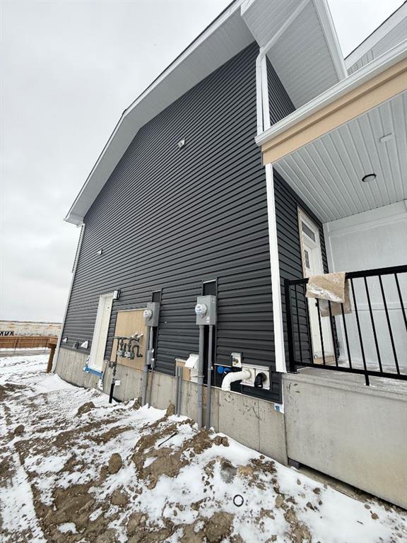 NO Condo Fee! This new built home has spacious 3 bedrooms and 2 full bathrooms upstairs and a half-bathroom on the main floor, modern kitchen, quartz countertops and island, front porch, back yard and a sun deck. Well designed living space with custom finishes and modern appliances, 9 feet ceiling on the main floor and basement. Rear lane access and 2 car concrete parking pad, basement with separate entrance and side alley access. Crossfield is a quiet and rapidly growing town which has well rated one elementary and one high school, day care, golf course, parks, playgrounds, and other amenities. Strategically located near Airdrie that's 10 minutes drive to Superstore, 15 minutes to Balzac, 25 minutes to Calgary Airport and close to Highway 2 for fast and easy commuting. An ideal opportunity for first time buyers or investors - book you're showing today!