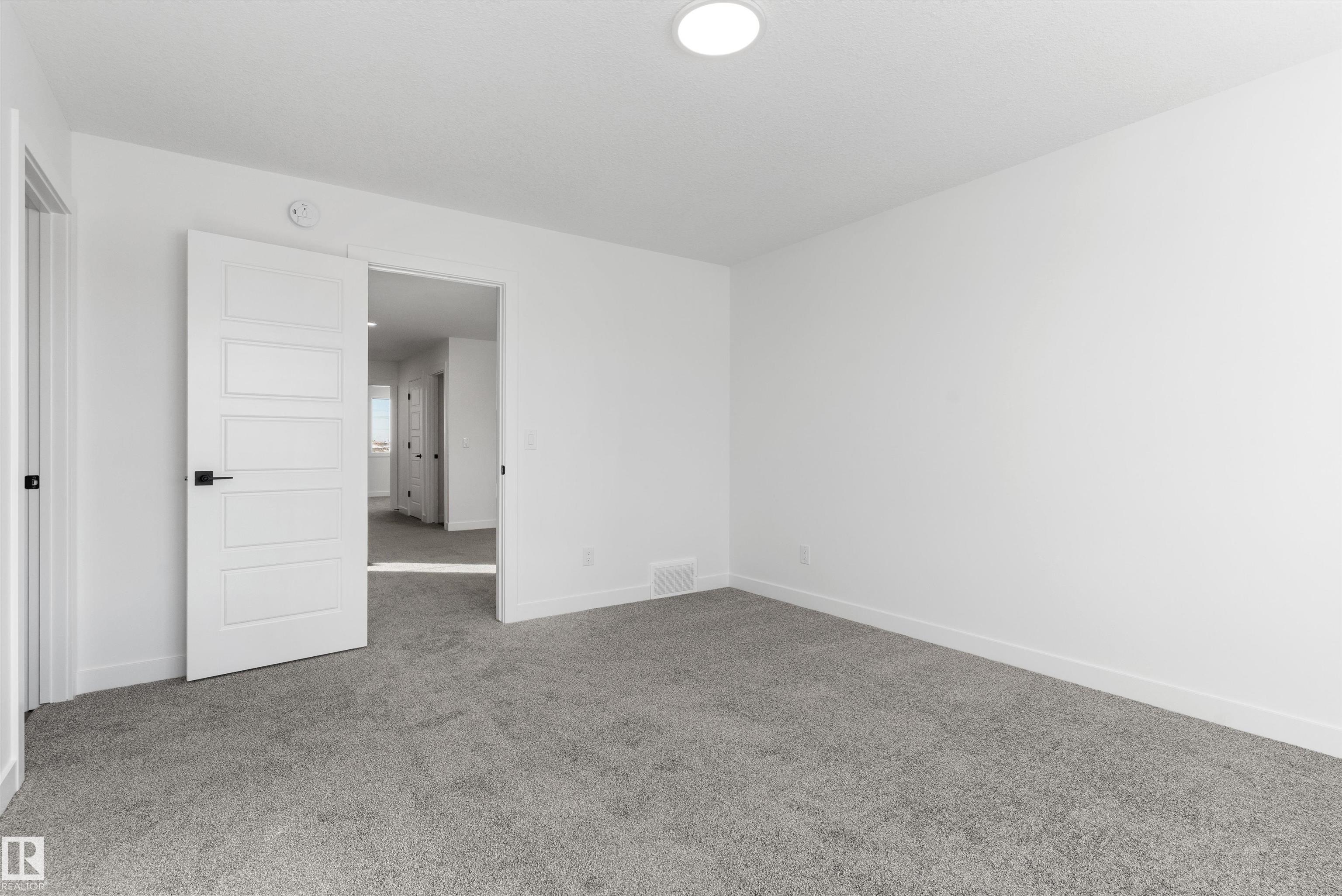 Built by Sterling Homes, this front-attached home in The Uplands at Riverview offers modern comfort and thoughtful design. Triple pane windows and 9’ ceilings brighten the main floor, where a welcoming foyer opens to a stylish open-concept living space. A rear den is ideal for a home office or quiet retreat. The kitchen features quartz countertops, a large island with seating, upgraded cabinetry, chimney hood fan, built-in microwave, and a pantry. The great room includes an electric fireplace, large windows with backyard views, and a patio door for easy outdoor access. Upstairs, the primary suite offers a walk-in closet and 5-piece ensuite with double sinks, soaker tub, and glass-door shower. A central bonus room, upper-floor laundry, full bath, and two additional bedrooms complete the layout. Luxury vinyl plank flooring, a separate side entrance, double attached garage with floor drain, and basement rough-ins add future potential.