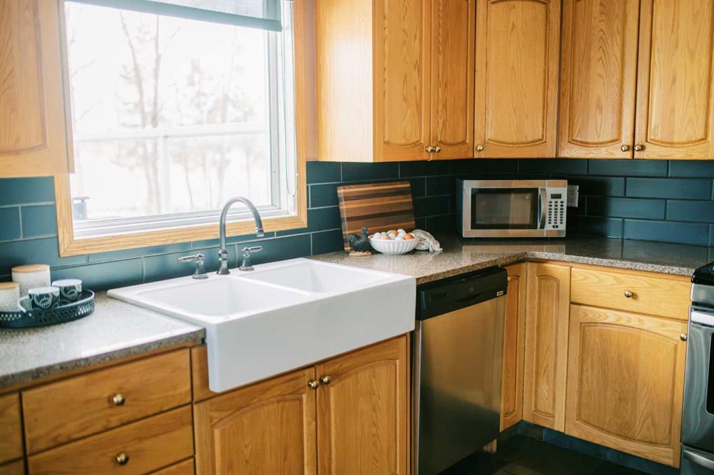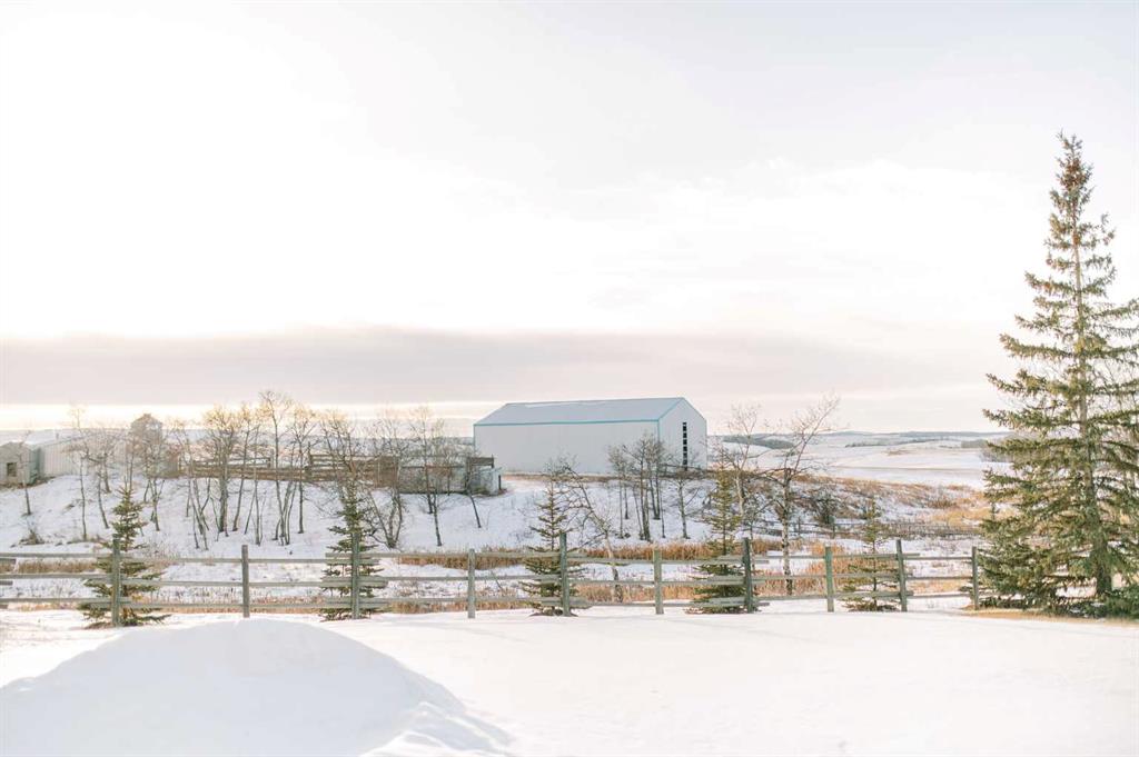 A WELL-ROUNDED 137 ACRE AGRIBUSINESS PROPERTY IN RURAL STETTLER COUNTY, OFFERING PRODUCTIVE LAND, EXCELLENT LIVESTOCK INFRASTRUCTURE, AND A METICULOUSLY MAINTAINED HOME(ORIGINAL OWNERS)SET AMONG ROLLING HILLS, MATURE TREES, AND A BEAUTIFULLY ESTABLISHED YARD SITE. The yard is thoughtfully designed for cattle and horses, featuring TWO 40’ x 60’ POLE SHEDS (one with power and a cement pad) a BARN WITH POWER, FIVE STALLS, and a TACK ROOM, multiple pens and paddocks, and several additional outbuildings. An AUTOMATIC WATERER SERVICES ALL FOUR PADDOCKS, supporting efficient livestock management. A FULLY FINISHED, HEATED and INSULATED 16’ x 20’ BUNKIE with its own wood stove adds excellent versatility. Completing the yard is a 24’ x 28’ DETACHED GARAGE WITH NATURAL GAS OVERHEAD HEAT. The land base includes approximately 100 ACRES OF GRAIN LAND, WITH THE REMAINDER SEEDED TO HAY, offering flexibility for a variety of agricultural operations. The BI-LEVEL HOME has been exceptionally well cared for and is both comfortable and efficient. The main level offers THREE BEDROOMS and TWO FULL BATHROOMS, including a primary bedroom with WALK-IN CLOSET and FULL ENSUITE. Updates include HARDWOOD FLOORING on the main level (approximately five years old), NEWER QUARTZ COUNTERTOPS, STAINLESS STEEL APPLIANCES, a GAS STOVE, a NEWER FARMHOUSE SINK, and a CORNER PANTRY. Large windows bring in an abundance of natural light. The lower level features a SPACIOUS FAMILY and RECREATION ROOM, a LARGE ADDITIONAL BEDROOM, a SECOND WASHER AND DRYER, PLUMBING FOR A NEW KITCHENETTE, NEW VINYL PLANK FLOORING (2024), a WALKOUT BASEMENT, a generous MUDROOM and STORAGE AREA, and an additional full bathroom. Heating and efficiency are well addressed with IN-FLOOR HEAT IN THE BASEMENT, FORCED-AIR HEATING and THREE WOOD STOVES (two in the home, one in the bunkie). SHINGLES ARE LESS THAN FIVE YEARS OLD, a NEW PRESSURE TANK WAS ADDED IN 2024, and the HIGH-PRODUCING WELL TESTED AT APPROXIMATELY 70 GALLONS PER MINUTE WHEN DRILLED, complete with a water treatment system. An EAST-FACING DECK, FIRE PIT/PATIO AREA, VEGETABLE GARDENS, and PERENNIAL LANDSCAPING enhance the yard setting, rounding out a property that offers a rare combination of productive farmland, strong infrastructure, and a move-in-ready home.