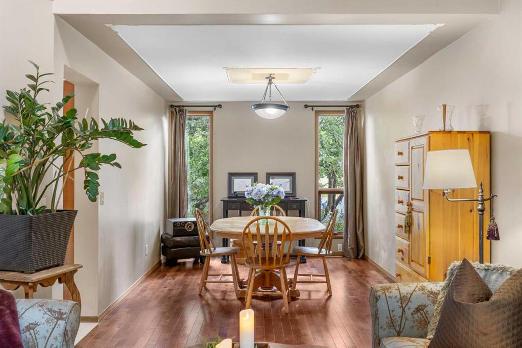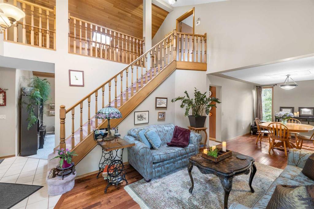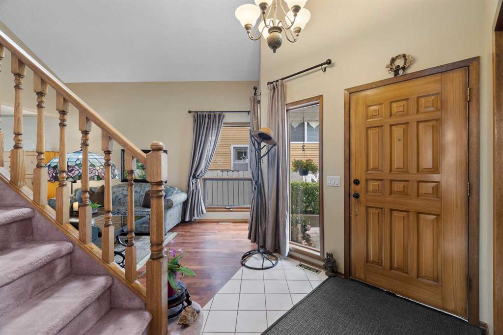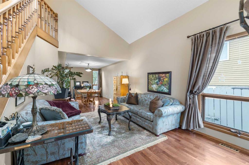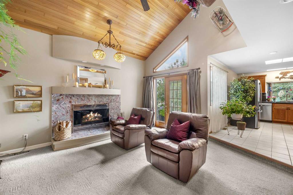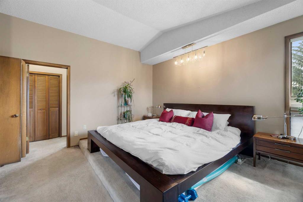 Welcome to this meticulously maintained, lovingly cared for family home in the wonderful community of Beddington—where timeless design, thoughtful upgrades, and everyday comfort come together effortlessly. Homes of this caliber rarely come to market! Ideally situated in a sought-after location near major roadways, walking distance to schools, shopping, and every amenity you could need, this home offers incredible curb appeal. A beautifully landscaped front garden, with an inviting courtyard, and a striking mix of aluminum and brick siding set the tone. The exposed aggregate driveway with brick accents adds a special touch, welcoming you to nearly 2,000 sqft of exceptionally cared-for living space. Enjoy morning coffee or evening chats with neighbors on the charming front patio, then step inside to be greeted by soaring vaulted ceilings and skylights that flood the interior with natural light. A spacious front foyer leads you into a graceful formal living and dining area featuring custom ceiling detail—perfect for hosting or enjoying a quiet night in. The heart of the home is a stunning, upgraded kitchen equipped with rich custom wood cabinetry, luxurious granite countertops, newer stainless steel appliances, and a picturesque bay window overlooking the lush garden. Whether you’re prepping a quick meal or entertaining a crowd, this kitchen blends style and practicality—and even offers room for a movable island or breakfast table. Just off the kitchen, step outside to a private, beautifully landscaped backyard with a two-tiered deck with a gas line, fire pit area and unbelievable gardens—an ideal setting for relaxing or entertaining at the end of the day. A sunken family room nearby offers a cozy retreat, centered around a wood-burning fireplace with decorative tile surround and warm wood panel accents. Rounding out the main level are a convenient 2-piece powder room, laundry room, and direct access to an oversized double attached garage. Up the stunning staircase, you’ll find three spacious bedrooms, including a tranquil primary suite with vaulted ceilings, a spa-inspired updated 3-piece ensuite, and a generous closet area. Two additional well-sized bedrooms and a full bathroom complete the upper level. The unfinished basement offers excellent potential for future development, along with ample storage space. Additional updates include a newer roof and soffit, newer furnace and refrigerator! Lovingly maintained and tastefully updated, this home is a true gem—a perfect blend of quality, location, and charm.