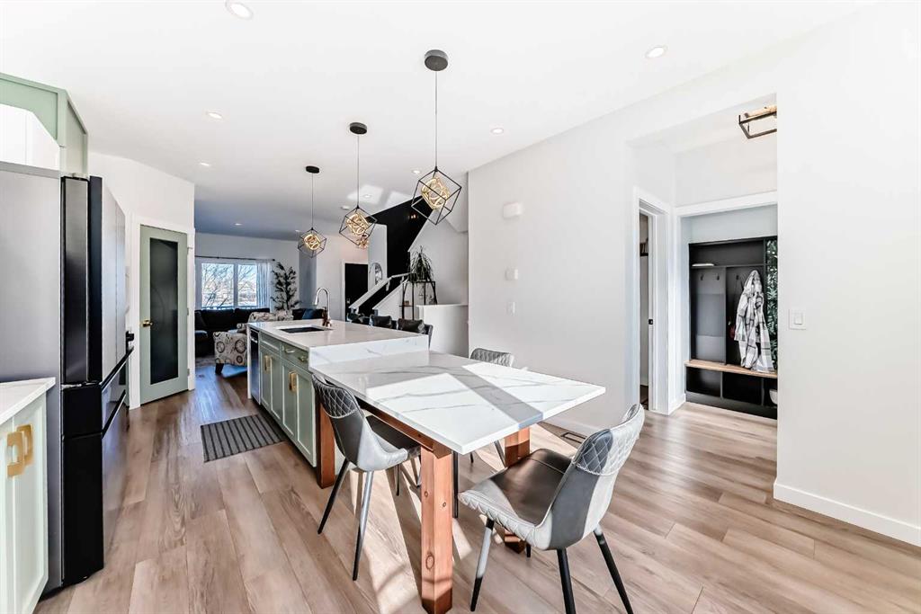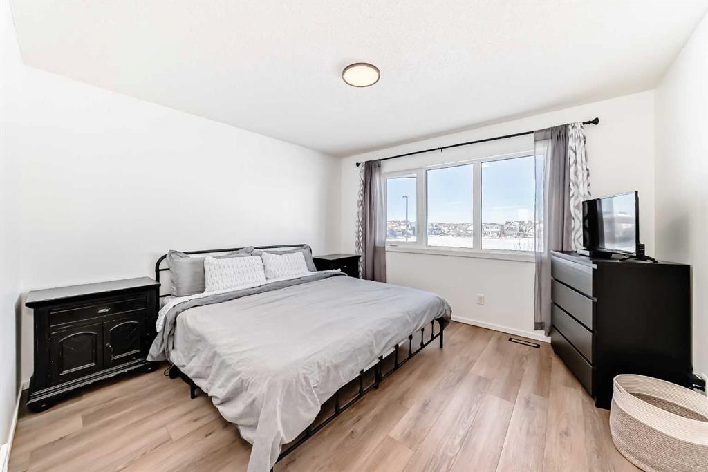 Welcome to this beautifully updated, move-in ready home with over 1800 sqft of finished living space located in the heart of Reunion. Perfectly positioned on a corner lot, directly across from open green space, and within walking distance to Heron’s Crossing school. Bright, welcoming and thoughtfully upgraded throughout, this home offers the ideal blend of comfort, style and functionality in a quiet, family-friendly neighbourhood. Step inside and you’ll immediately notice how bright and inviting the main floor feels, with new windows and doors allowing natural light to pour in. The living area is anchored by a custom feature wall with a contemporary electric fireplace, creating a warm and modern focal point. The fully updated custom kitchen is truly the heart of the home, complete with new appliances, updated lighting, luxury vinyl flooring and an oversized waterfall quartz island with matching table. Perfectly designed for everyday living and effortless entertaining. Upstairs, you’ll find three bedrooms including a spacious primary retreat with its own full ensuite, offering a comfortable and private space to unwind. New carpet on the stairs adds a fresh finishing touch The lower level is fully developed, providing valuable additional living space ideal for a rec room, home office, gym or family area, a flexible space that adapts to your needs. Outside enjoy the low maintenance front yard enhancing curb appeal while keeping upkeep simple. Out back, you’ll find a fully fenced yard with grass space ideal for children and pets, along with an updated patio and gazebo designed for relaxing and hosting. The corner lot provides ample parking, in addition to the double detached garage and parking pad, offering flexibility for vehicles, toys or guests. Located just steps to schools, shopping, churches, parks and walking paths, this home offers both convenience and community. Bright, stylish and thoughtfully upgraded. This is one you will not want to miss! Contact your favorite Realtor to schedule a showing today.