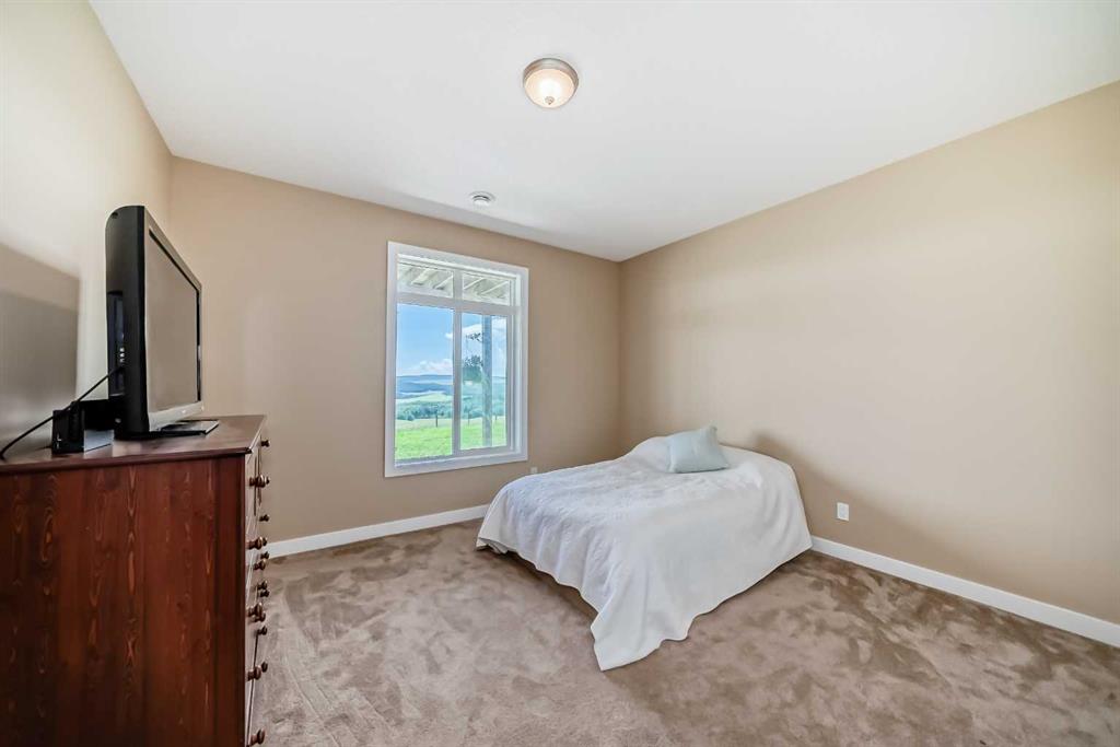 This exceptional 50-acre parcel offers panoramic views of the downtown skyline and foothills, visible from nearly every vantage point on the property. Perfectly located across from the Ann & Sandy Cross Conservation Area and only 2.5 km from the city, you’ll enjoy peaceful country living with quick access to everyday amenities, including Red Deer Lake School and Costco Buffalo Run. This property presents outstanding potential for future development or long-term investment with its gentle sloping land ideal for walk-out sites, multiple access points including a southeast road allowance, and two high producing wells both exceeding 12 gpm. With over 3200 sq ft of developed living space, this 5 bedroom, walk-out bungalow, built in 2016, has views that are as stunning from the main floor 600+ sq ft deck, as they are from the walk-out lower-level’s oversized windows. The heart of the home is the kitchen with rich, espresso-stained cabinetry, sleek granite counters, a massive island for prep or casual dining. The kitchen connects to a bright dining area, living room and large outdoor deck. The main floor has the primary bedroom, attached ensuite, as well as two additional bedrooms, additional full bath and laundry room. The lower level is an open plan with 9’ ceilings and features an expansive rec room, two additional bedrooms, a full bathroom with dual vanities, and a mechanical room. Whether you’re looking to invest, develop, or simply enjoy an expansive rural retreat within minutes of the city, this is an exceptional opportunity. *Note: some images digitally edited.