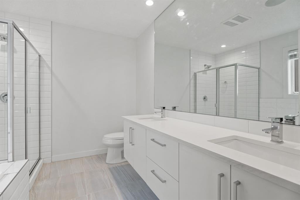 This elevated inner-city living awaits in this architecturally refined two-storey townhome in the heart of Tuxedo, just steps from Centre Street’s vibrant cafés, dining, and transit connections. Thoughtfully upgraded with integrated ceiling speakers in the living room, kitchen, and primary bedroom, the home delivers an elevated everyday experience where design and technology work seamlessly together. Designed with intention, the open-concept main level blends modern elegance with everyday comfort. Engineered flooring flows throughout, while a statement gas fireplace and custom built-ins create warmth and character. The chef-inspired kitchen showcases quartz countertops, stainless steel appliances, abundant cabinetry, and a generous island designed for gathering and effortless entertaining. Upstairs, two private bedroom suites offer exceptional comfort. The vaulted primary retreat is a true sanctuary, complete with a walk-in closet and a spa-inspired five-piece ensuite featuring heated floors and a calming, retreat-like atmosphere. The fully developed basement continues the home’s thoughtful design with soaring ceilings, a spacious recreation room, guest bedroom, full bath, and ample storage — ideal for hosting, working from home, or simply unwinding. Outdoors, enjoy a fully fenced yard for private relaxation alongside the convenience of a detached garage. Refined, contemporary, and exceptionally located, this Tuxedo residence delivers the perfect balance of style, space, and urban accessibility.