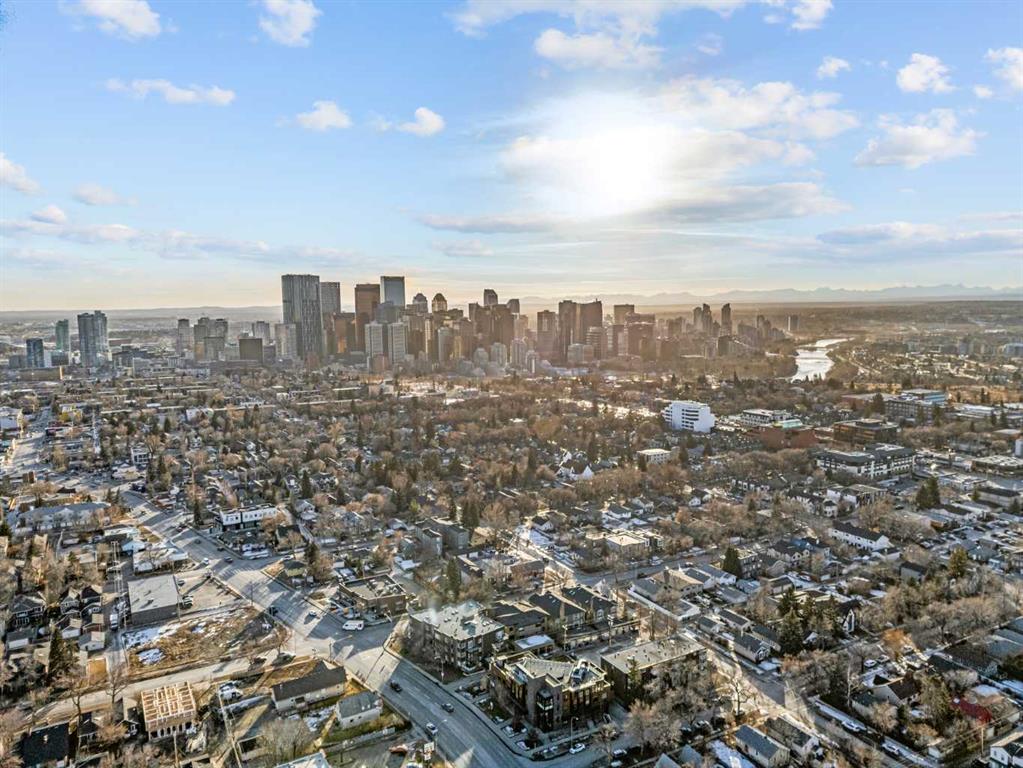 This private northeast-facing residence in an intimate four-unit condo complex, ideally located in the heart of Crescent Heights. Exceptionally well maintained, this attached two-storey home offers a modern, clean design with a comfortable and private feel throughout. A consistent, muted earth-tone palette enhances the cohesive aesthetic across the main and upper levels, complemented by 9’ ceilings on all floors and central A/C. The main level features a spacious open-concept layout ideal for both everyday living and entertaining. The kitchen is the focal point, complete with a centre quartz island with double sink, telescoping faucet, garburator, and generous bar seating. Stainless steel appliances include an electric stove, refrigerator, microwave hood fan, and dishwasher, while soft-close cabinetry provides ample storage. Hardwood flooring flows through the main living areas, and a convenient half bath completes the level. Step outside to the rear deck, equipped with a BBQ gas line and quick access to the detached single-car garage. Upstairs, you’ll find two well-proportioned primary bedrooms, each with walk-in closets and private ensuite bathrooms, creating ideal separation and comfort. Carpet adds warmth to the upper level and staircases, while ceramic tile finishes the ensuite bathrooms. Blackout window blinds are installed throughout, and both ensuites feature upgraded Toto toilets. The lower level offers a full, open, undeveloped basement with painted concrete floors, two oversized windows suitable for future bedrooms, and insulation already in place. Additional upgrades include an ecobee smart thermostat and a Leviton security system with no monthly fees (app-based operation). Located just steps from Crescent Heights’ popular cafes, restaurants, and amenities, and a short bike ride to downtown, this property offers an exceptional blend of low-maintenance living, thoughtful design, and unbeatable inner-city convenience.