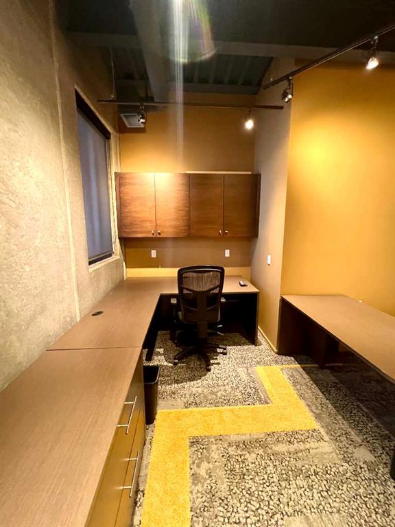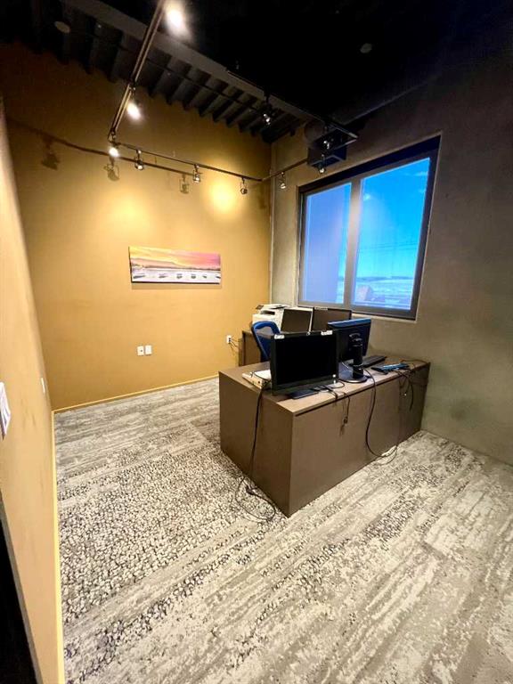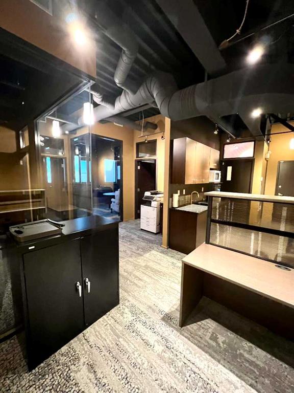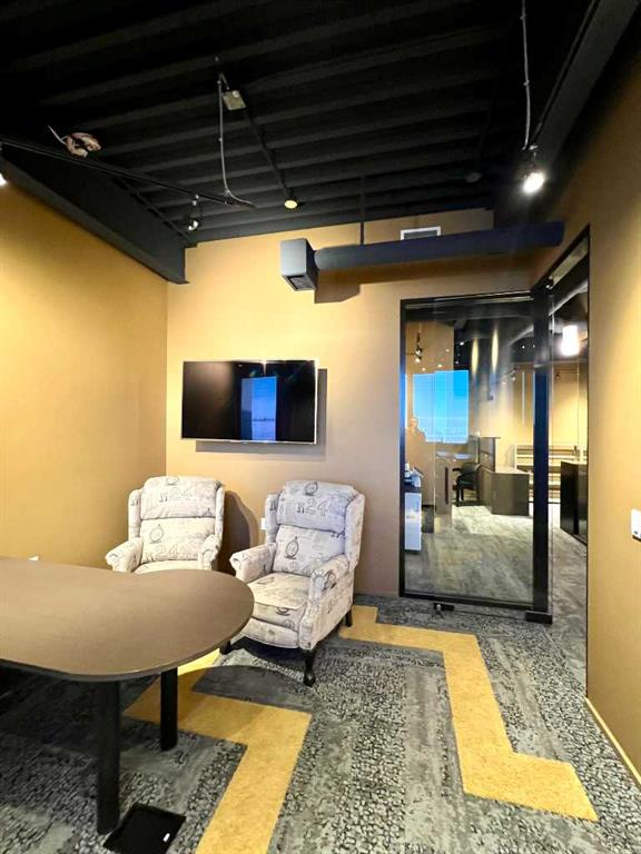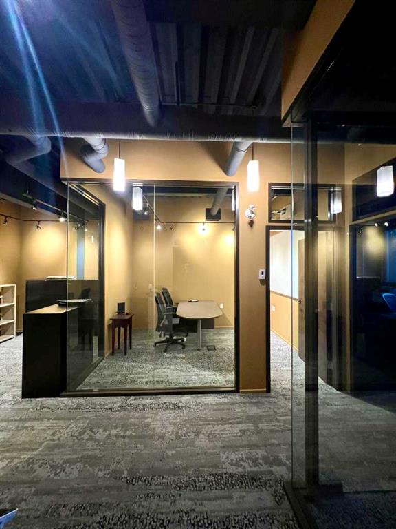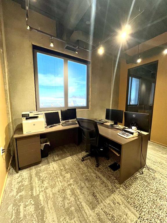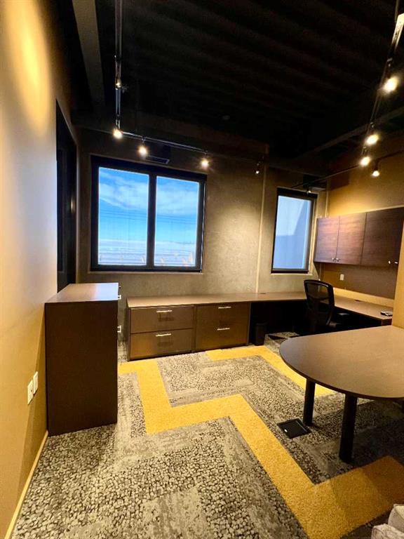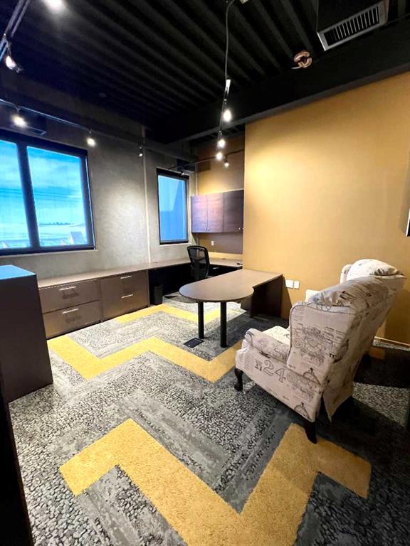 STUNNING OFFICE SPACE FOR LEASE! Featuring ultra-high-end finishes, glass walls, granite counters, granite-walled baths & more. Featuring exposure along QE2 and situated on the second floor of the Wood Group Business Centre, this 995 SQ FT 2-office, boardroom, private bath, and a galley reception area screams, "Take me now!" Impress your clients and suppliers alike with award-winning finishes throughout. Make it fun to go to the office in this efficient CONCRETE BUILDING with front and rear parking with a paved lot. Office 1: 9'10"x11", Office 2: 9'10"x12", Boardroom: 11'"x12", and open office/ reception area. Lease rates starting at $19.00/PSF plus NNN costs of $5.00/PSF (includes everything except internet/phones)