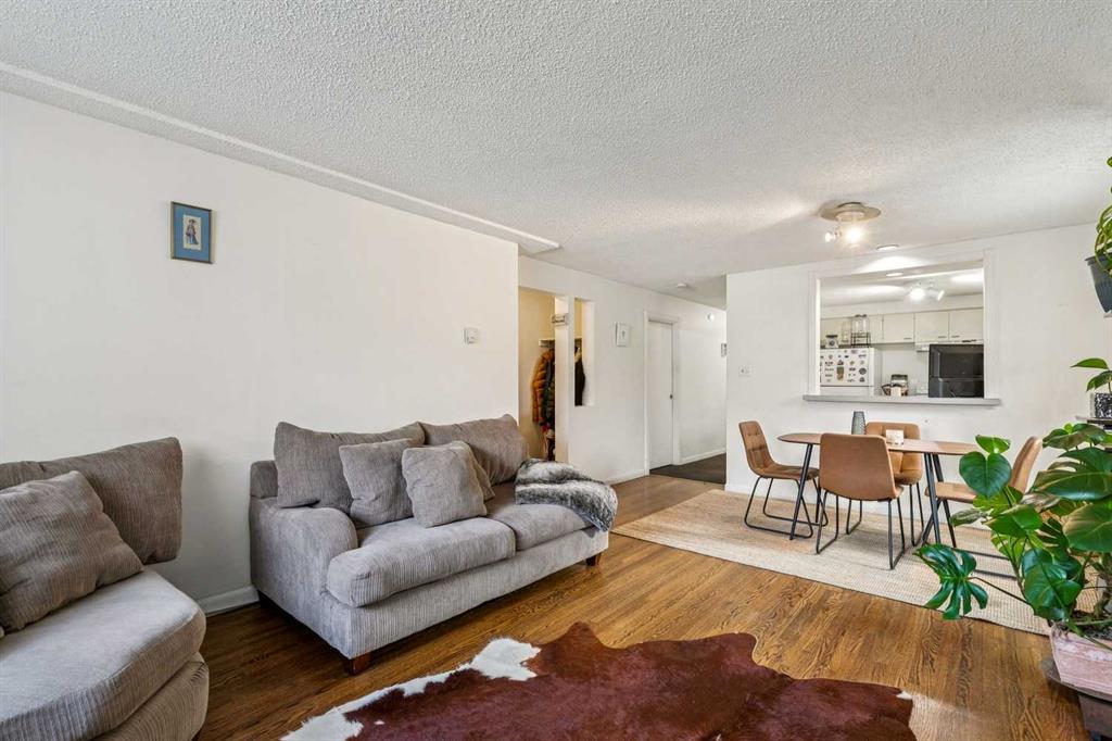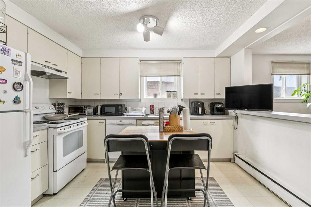 Bright and full of character, this well-maintained 2-bedroom apartment offers an ideal blend of comfort and convenience. Featuring beautiful hardwood floors, a spacious living area, and both front and rear entrances, the layout is functional and inviting. The kitchen includes an open eating bar, perfect for casual dining or entertaining. Located just steps from the vibrant shops and restaurants along 17th Avenue and within easy walking distance to downtown, this home is perfectly situated for an urban lifestyle. Whether you're a first-time buyer or looking for an investment property, this is an excellent opportunity you won’t want to miss.